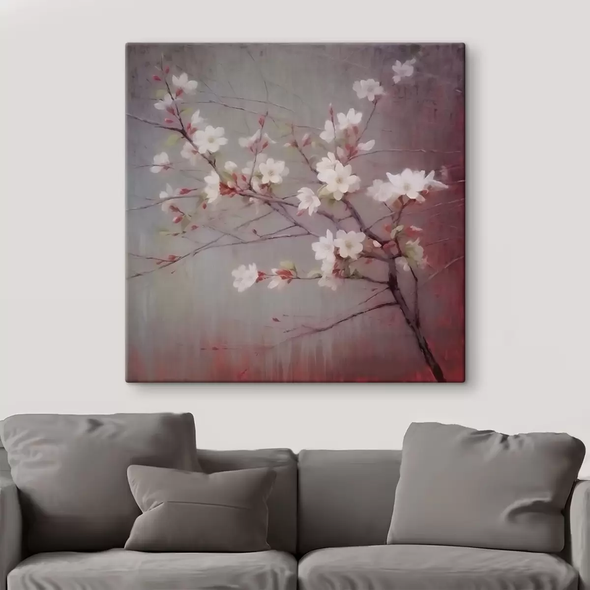 Peintures Une branche avec des fleurs blanches s42339