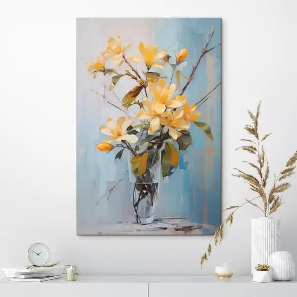 Peinture Branches avec fleurs jaunes dans un vase imitation peinture Art. s42358