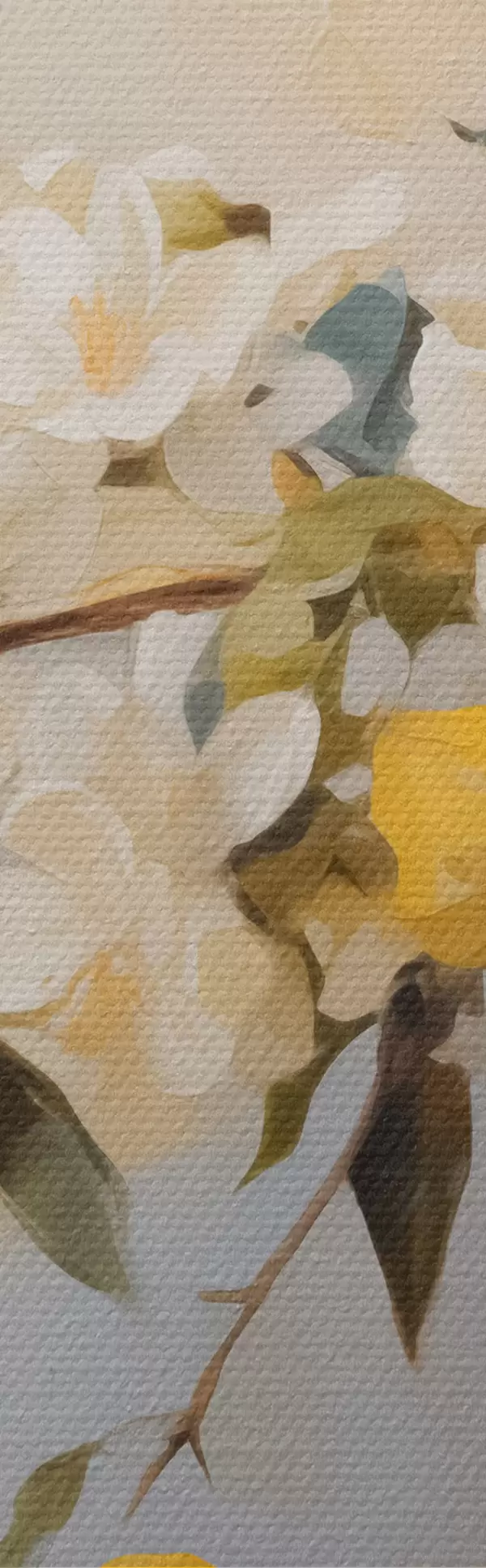 Peinture Vase avec branches de fleurs blanches et peinture imitation citron Art. s42360