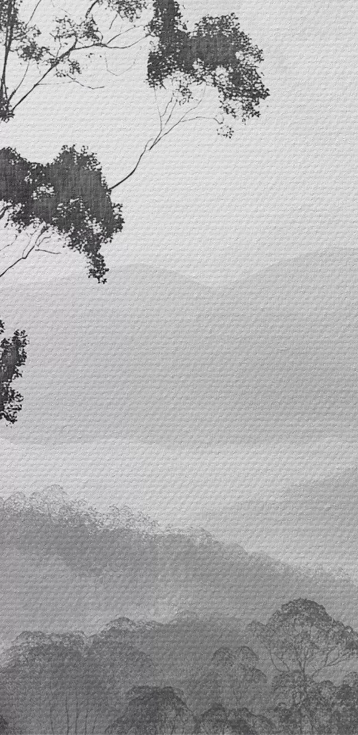 Peintures Forêt mystique dans les tons gris, paysage de nature, arbres s42373