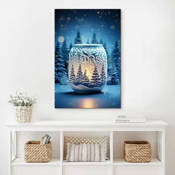 Peinture Bougie sur fond de paysage hivernal Art. s42380