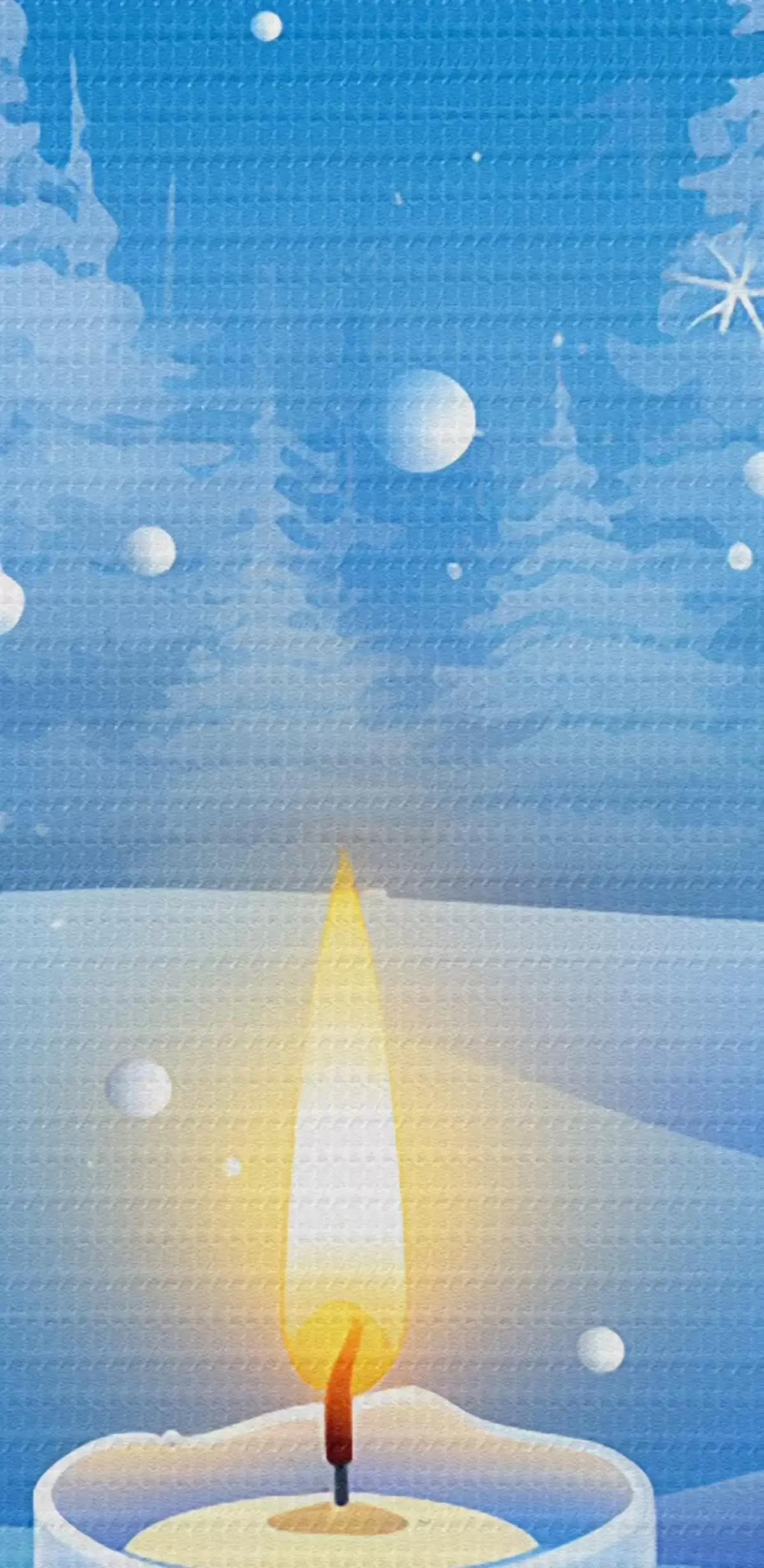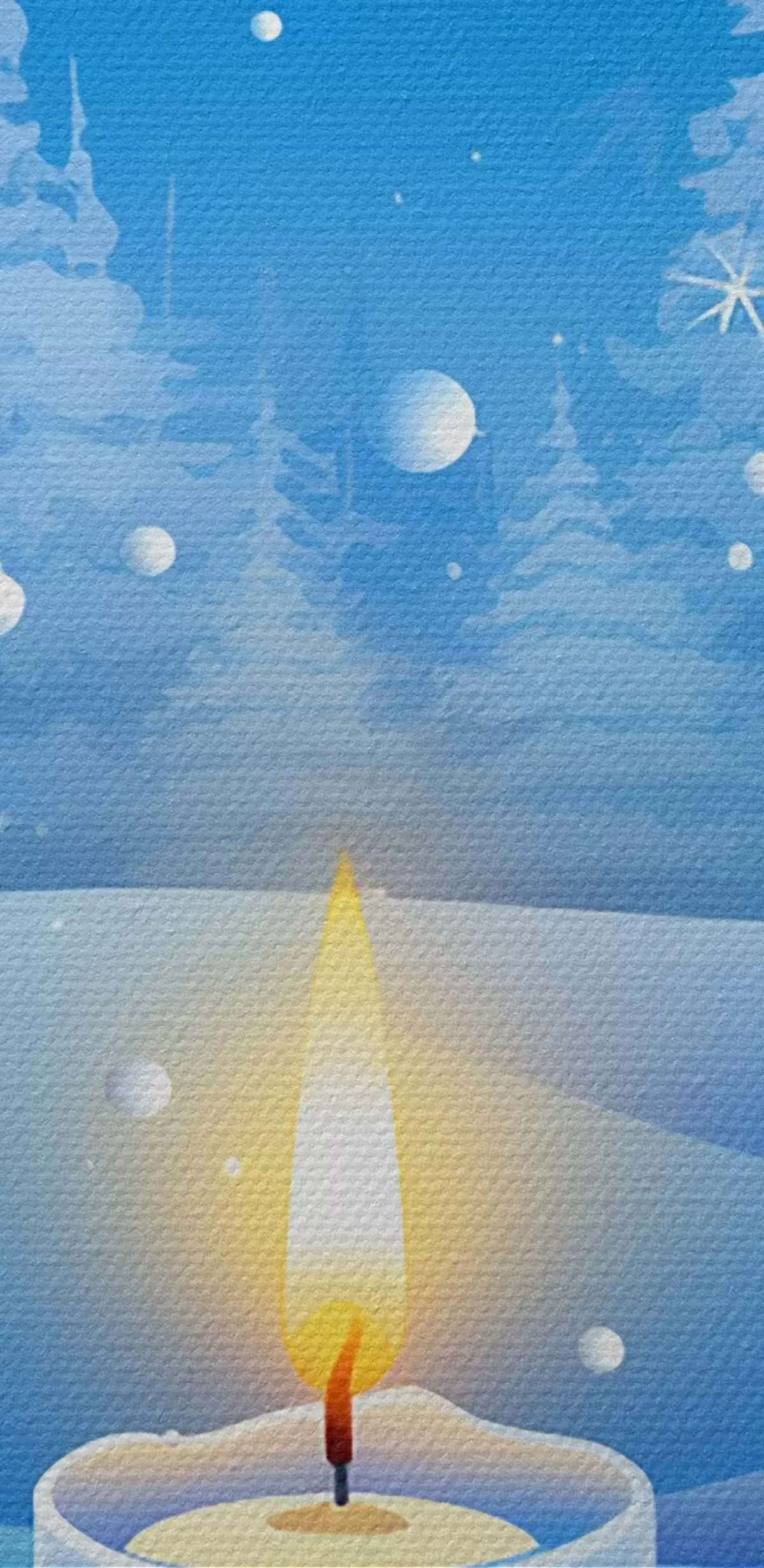 Peinture Bougie sur fond de forêt hivernale enneigée Art. s42383