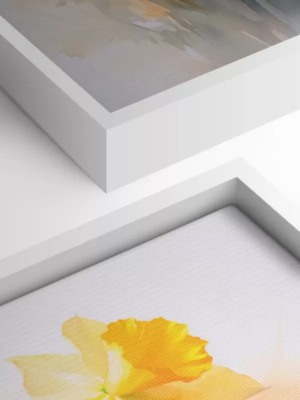 Trois types de matériaux peuvent être commandés : Economic Canvas - matériau dense et durable pour l'impression numérique, identique à la toile de peintre, surface imperméable, reproduction réaliste des détails, matériau à grain moyen. Premium Canvas - la texture ressemble à celle d'une toile de peintre (petits fils entrelacés). Reproduction douce et détaillée de l'image sur une surface mate. Eco-Premium - tissu 100 % coton de haute qualité. Grâce aux fibres naturelles de coton, le matériau est durable et résistant à l'usure. Excellente reproduction des couleurs et des détails.