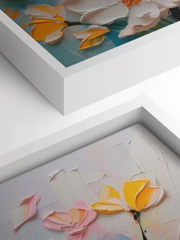 Trois types de matériaux peuvent être commandés : Economic Canvas - matériau dense et durable pour l'impression numérique, identique à la toile de peintre, surface imperméable, reproduction réaliste des détails, matériau à grain moyen. Premium Canvas - la texture ressemble à celle d'une toile de peintre (petits fils entrelacés). Reproduction douce et détaillée de l'image sur une surface mate. Eco-Premium - tissu 100 % coton de haute qualité. Grâce aux fibres naturelles de coton, le matériau est durable et résistant à l'usure. Excellente reproduction des couleurs et des détails.