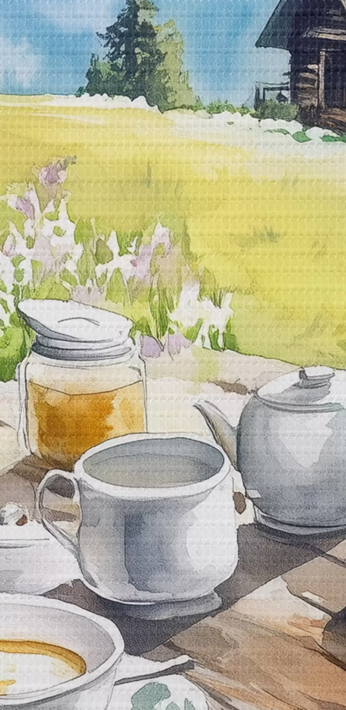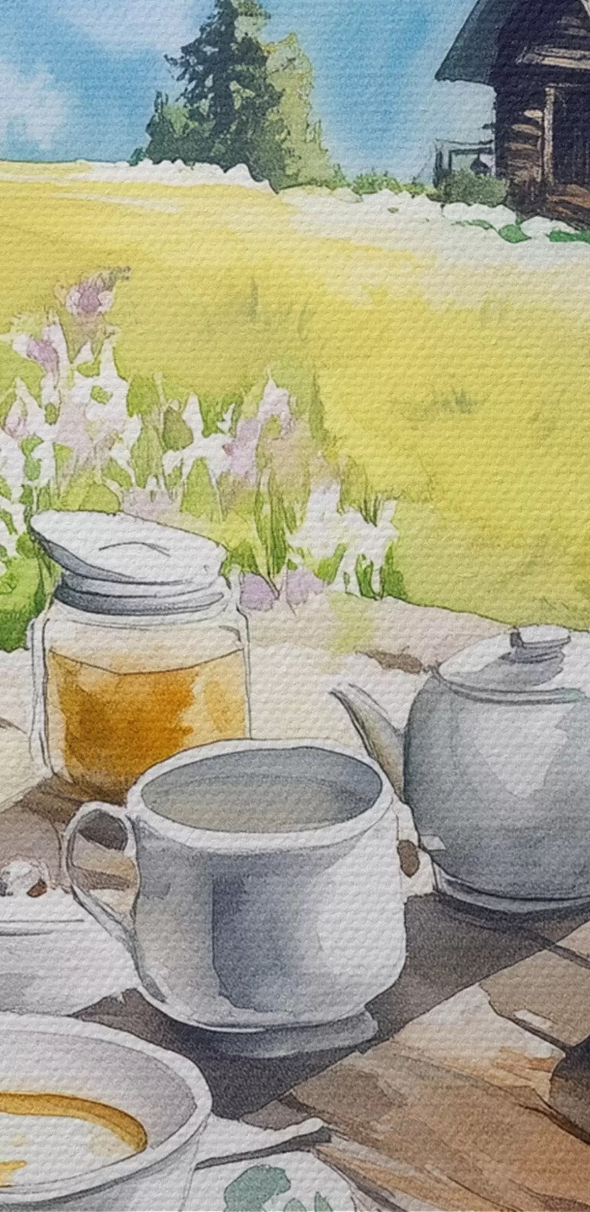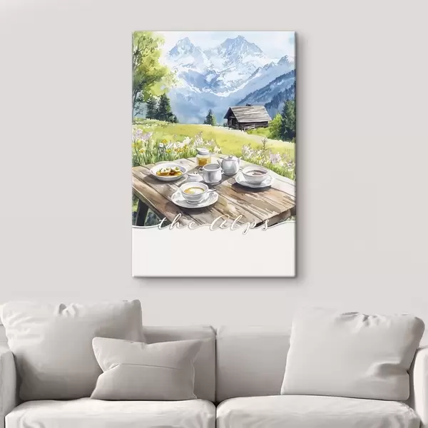 Peinture Les Alpes, paysage de montagne, nature estivale, maison en bois Art. s42424