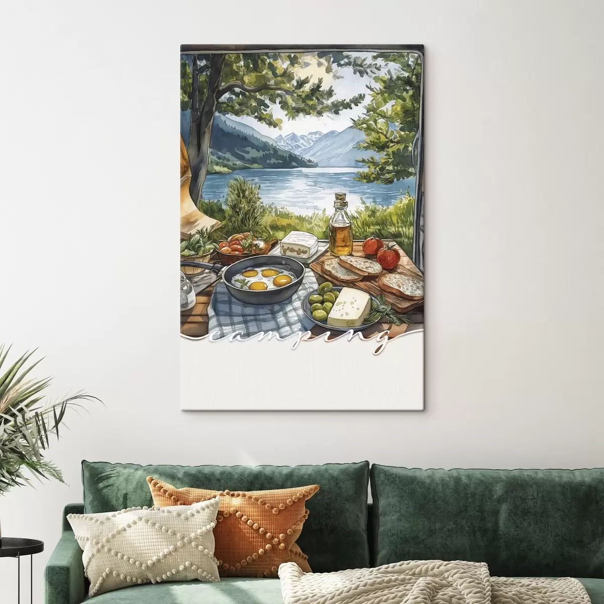 Peintures Camping esthétique, style aquarelle, lac d'été, nature, nourriture s42428