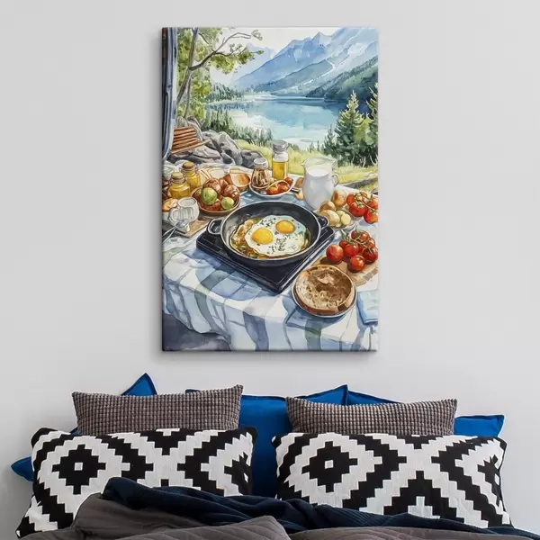 Peinture Petit déjeuner esthétique près du lac, style aquarelle Art. s42432