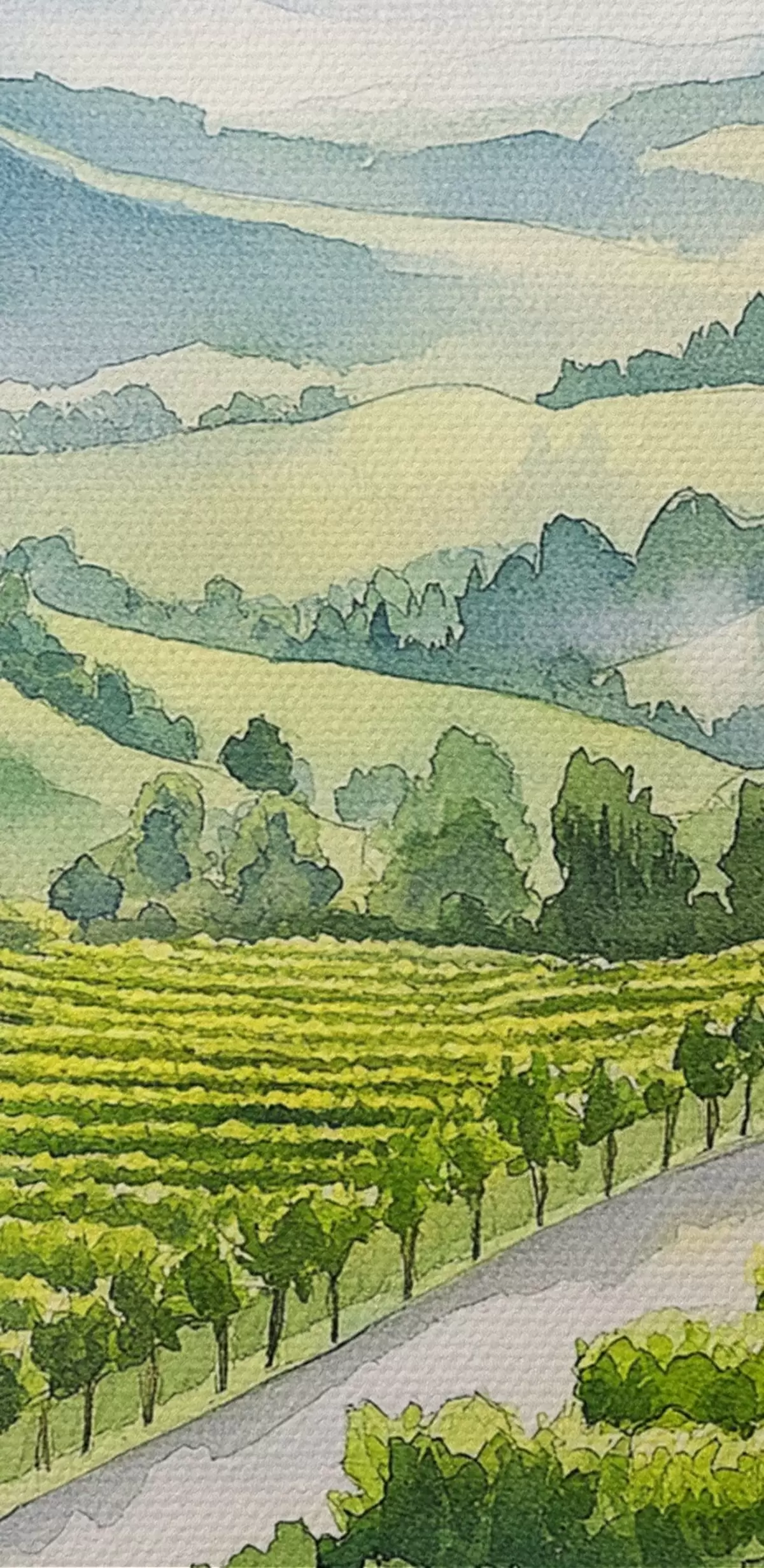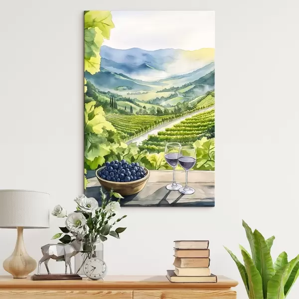 Peinture Jardins de pêche, paysages de style aquarelle, verres à vin Art. s42444