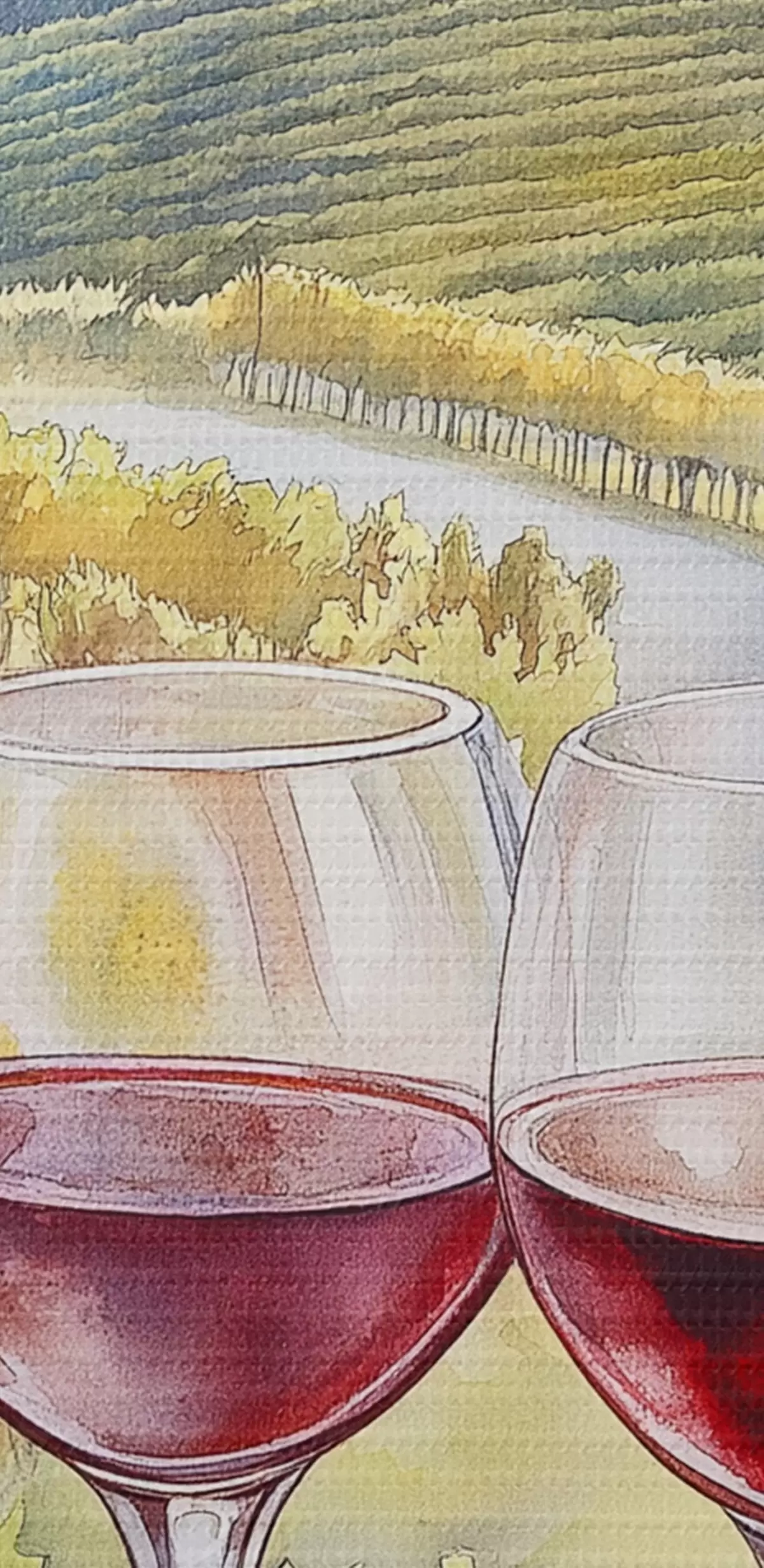 Peinture Coucher de soleil en Toscane, vignoble, architecture ancienne, aquarelle, Italie Art. s42446
