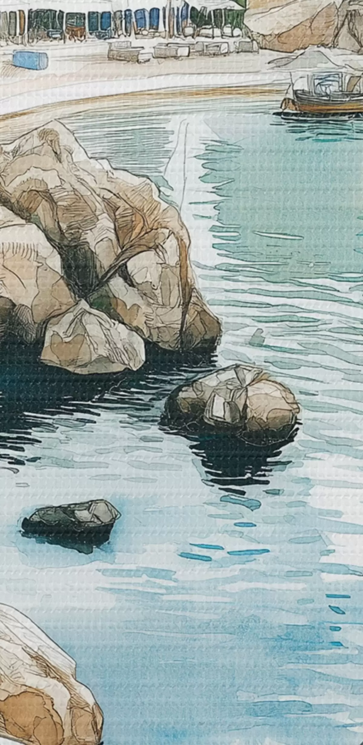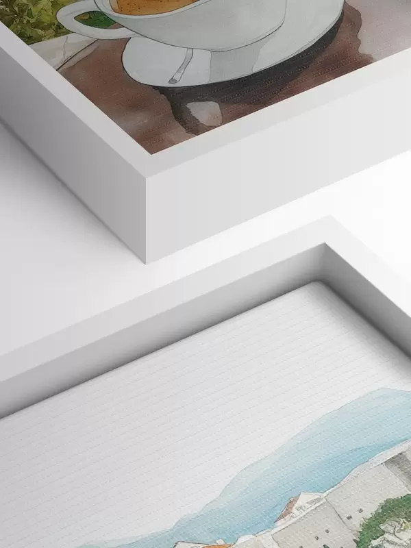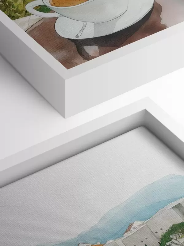 Peinture Tasses de café au bord de la mer, style aquarelle, Croatie Art. s42448
