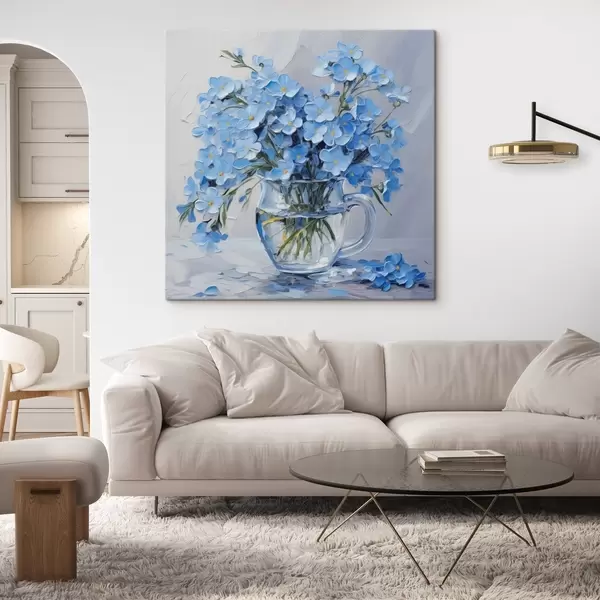 Peinture Fleurs bleues dans un vase transparent imitation peinture Art. s42467