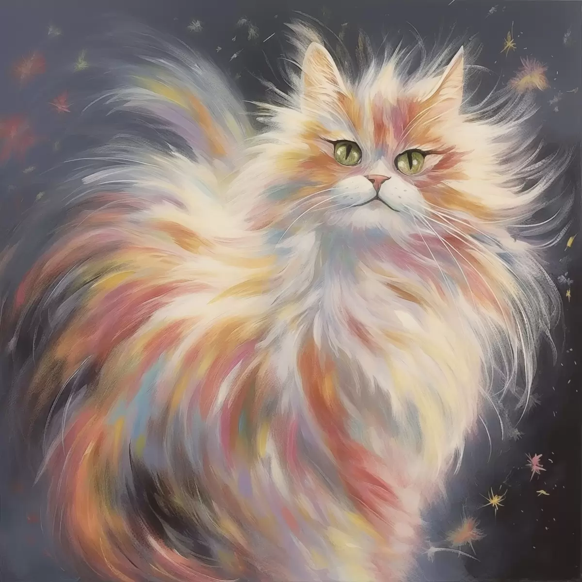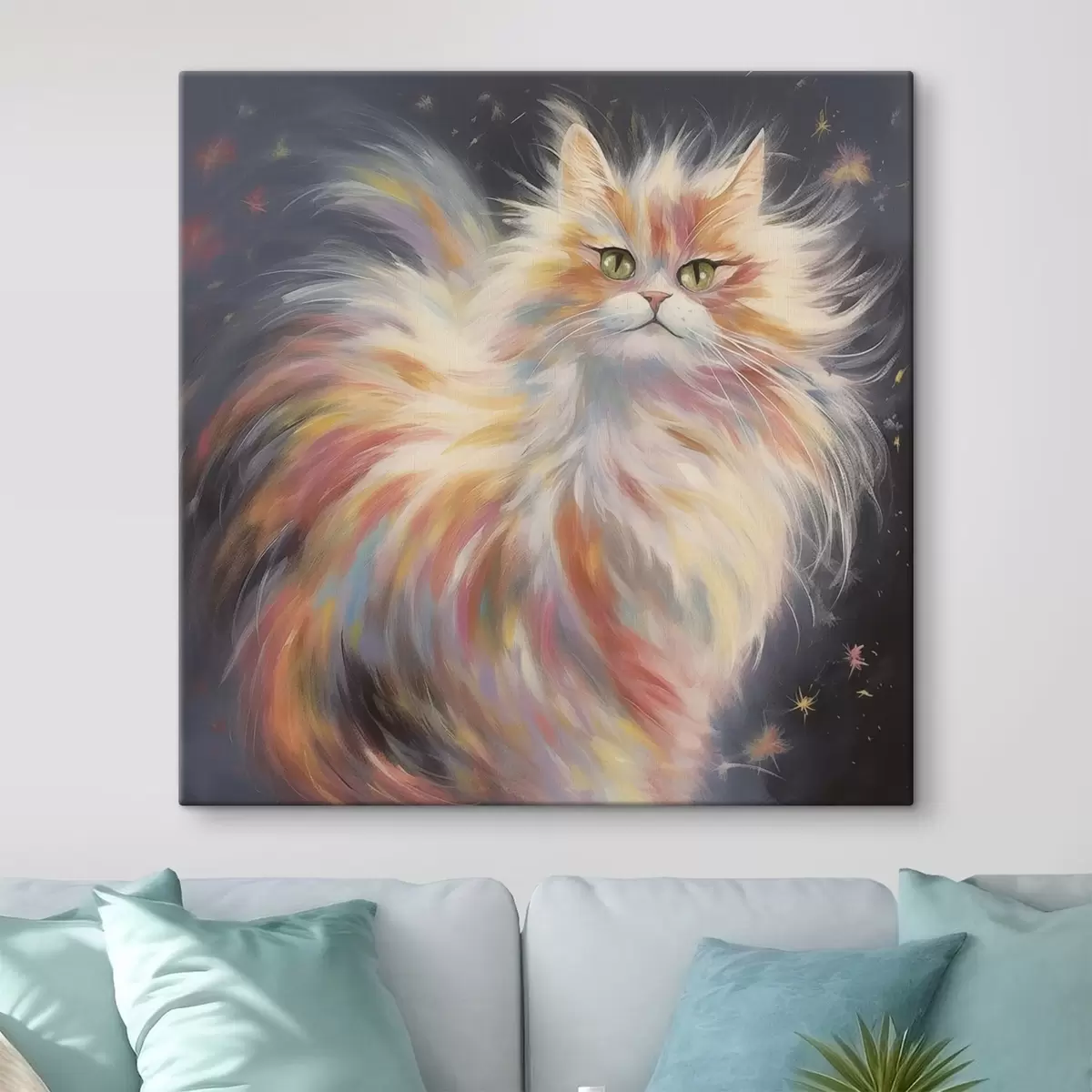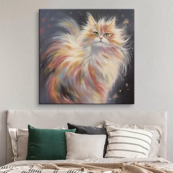 Peinture Chat à la fourrure colorée sur fond sombre Art. s42484