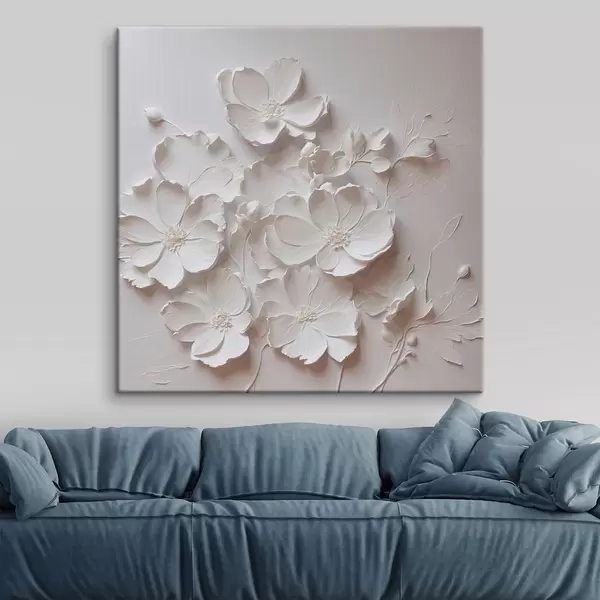 Peinture Fleurs blanches sur fond blanc dans le style de la peinture à l'huile Art. s42516