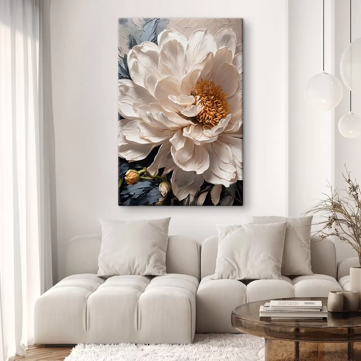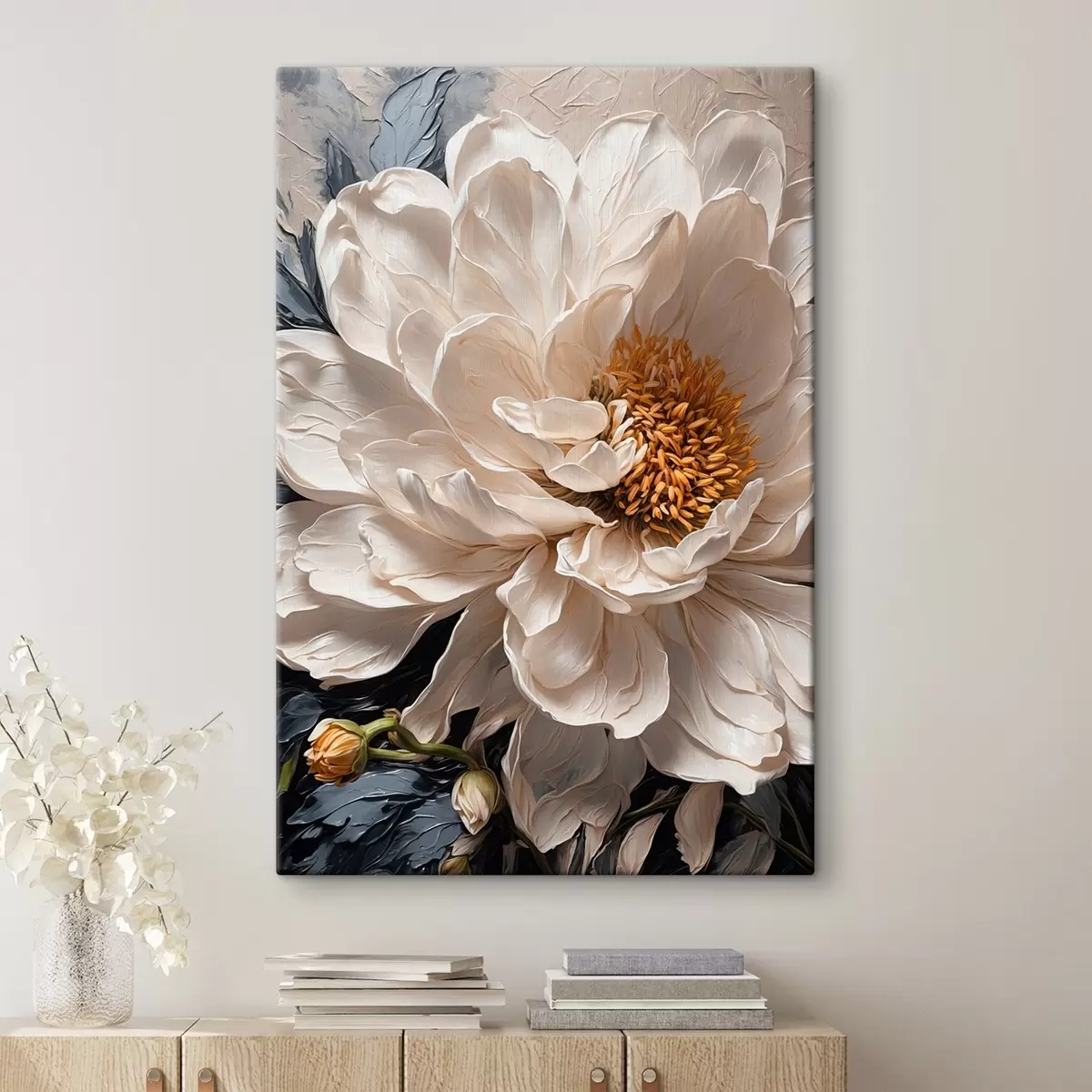 Peinture Fleur blanche sur fond bleu-beige Art. s42523