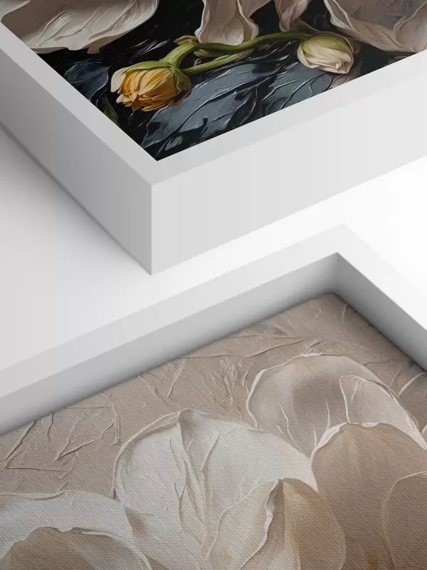Trois types de matériaux peuvent être commandés : Economic Canvas - matériau dense et durable pour l'impression numérique, identique à la toile de peintre, surface imperméable, reproduction réaliste des détails, matériau à grain moyen. Premium Canvas - la texture ressemble à celle d'une toile de peintre (petits fils entrelacés). Reproduction douce et détaillée de l'image sur une surface mate. Eco-Premium - tissu 100 % coton de haute qualité. Grâce aux fibres naturelles de coton, le matériau est durable et résistant à l'usure. Excellente reproduction des couleurs et des détails.