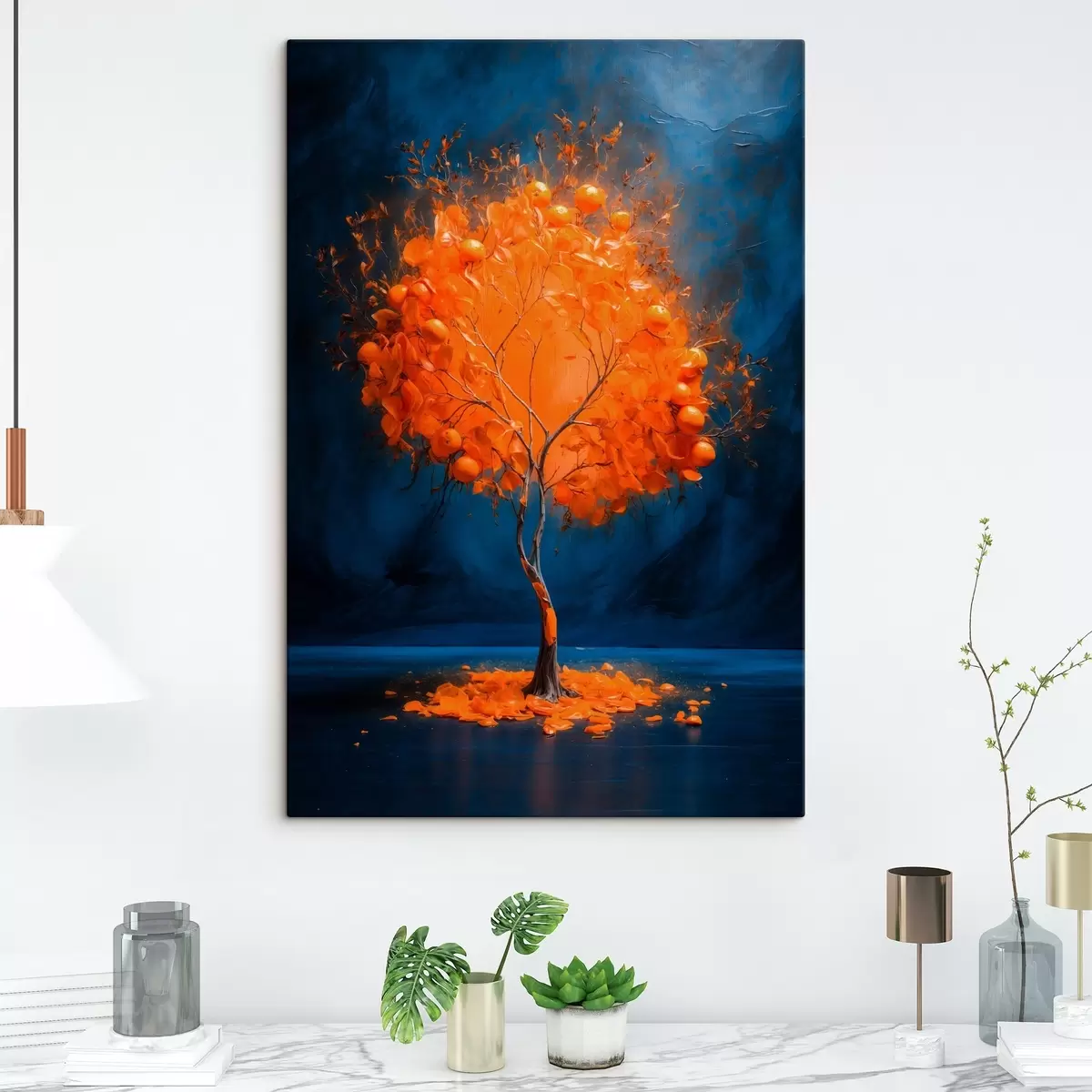 Peinture Arbre orange sur fond bleu en peinture acrylique Art. s42525
