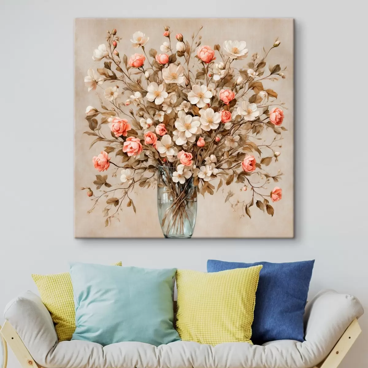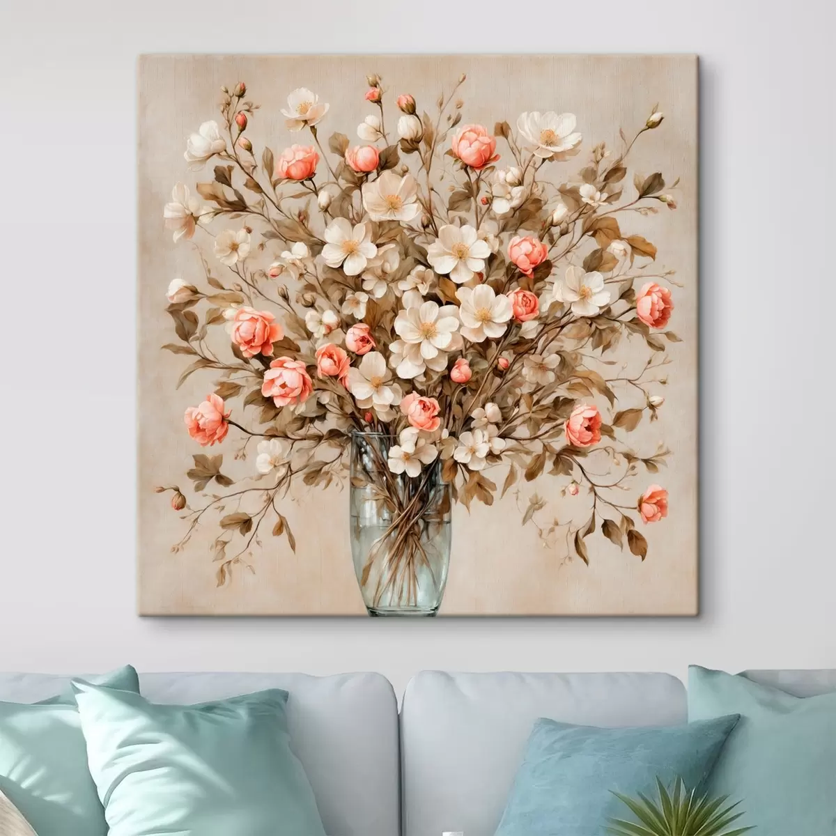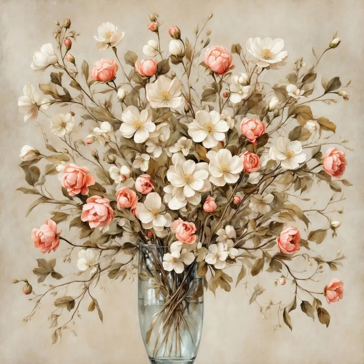 Peinture Fleurs dans un vase transparent sur fond beige Art. s42534