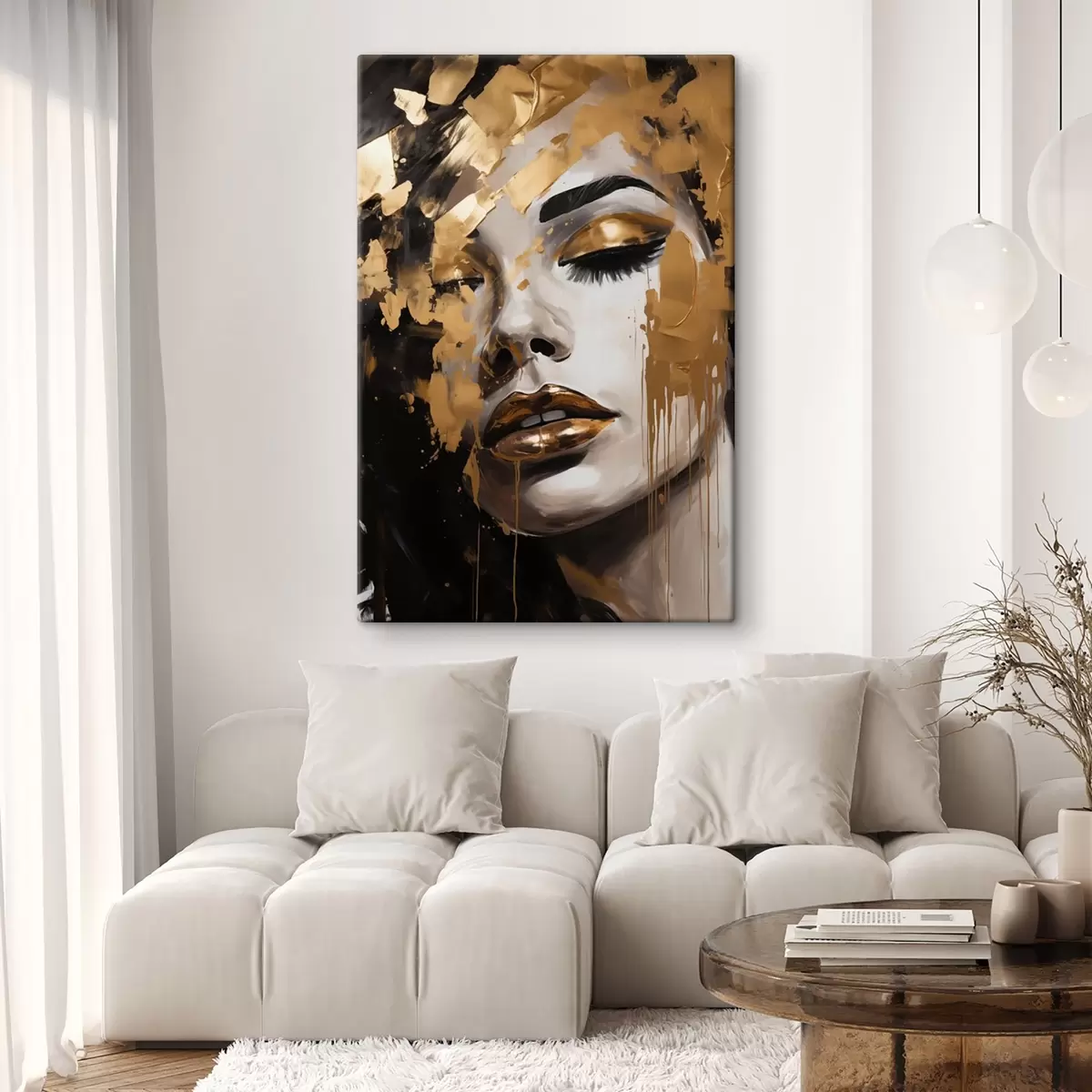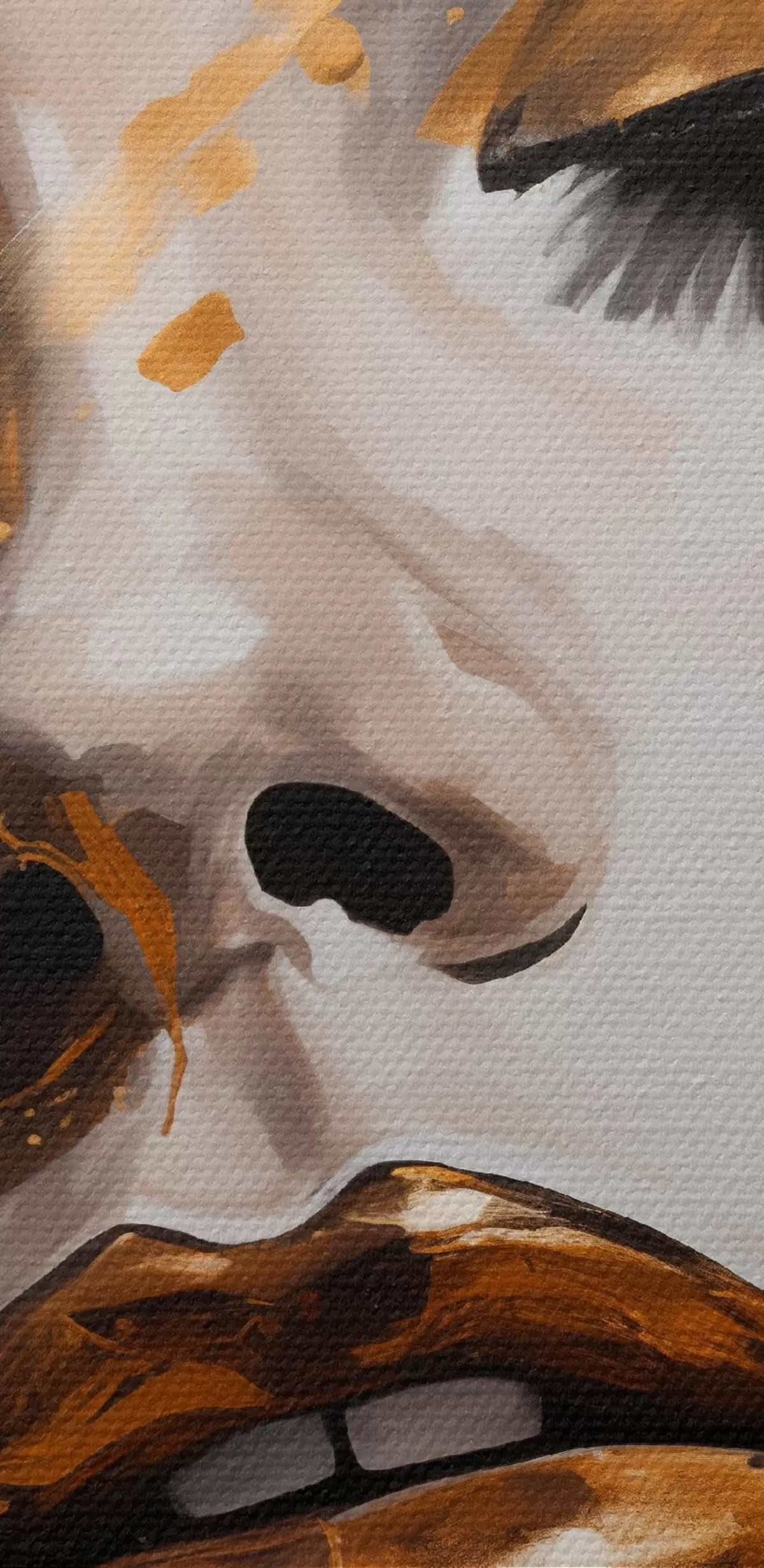 Peintures Portrait abstrait d'une femme avec de riches coups de pinceau dans des tons chauds, créant une image vibrante et dramatique. s42619