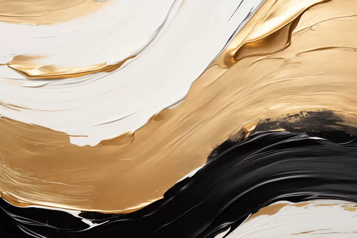 Peinture Composition abstraite présentant des touches audacieuses de peinture blanche, jaune et noire Art. s42717