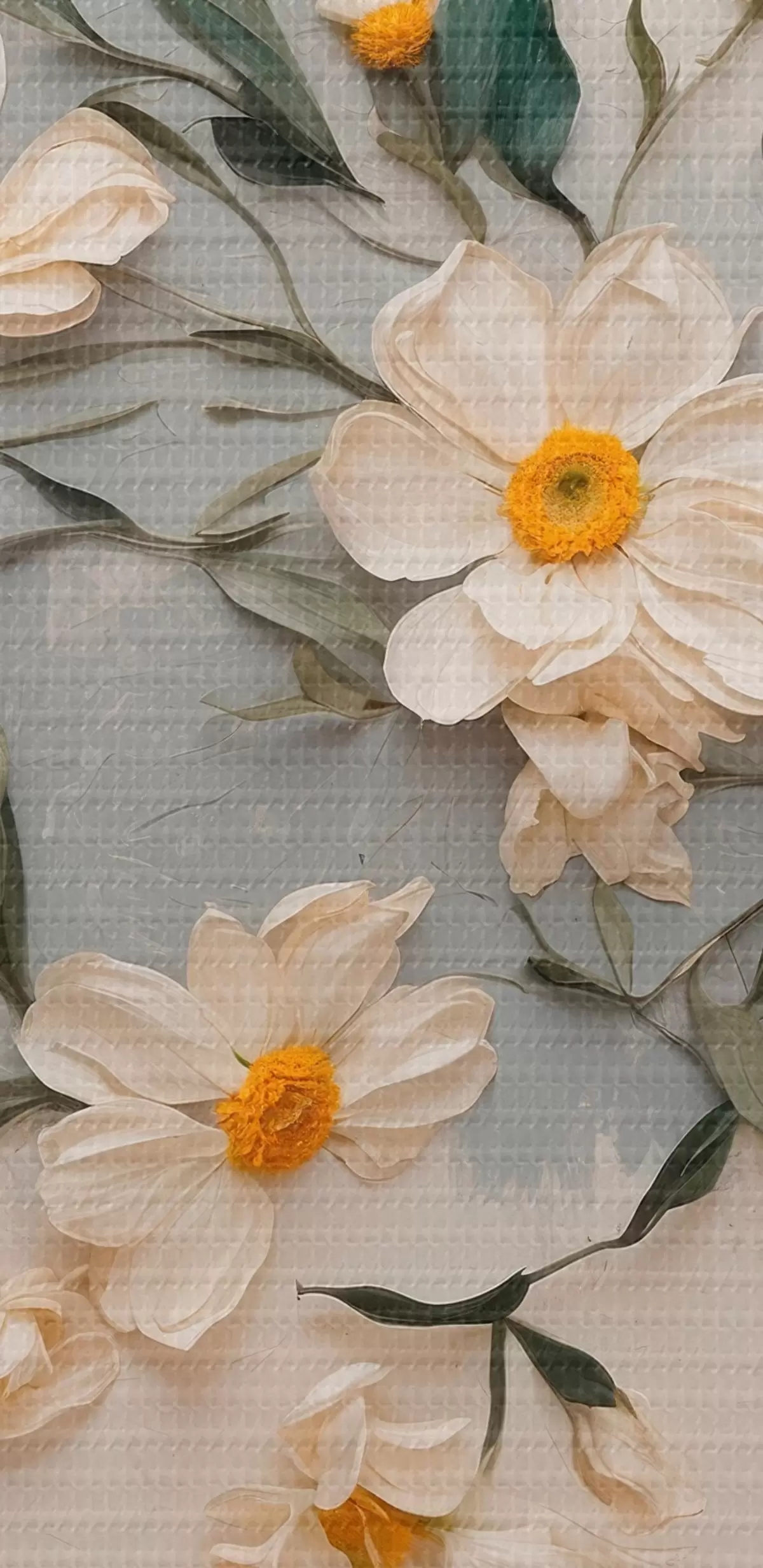 Peintures Fleurs et feuilles blanches sur fond blanc et gris s42764