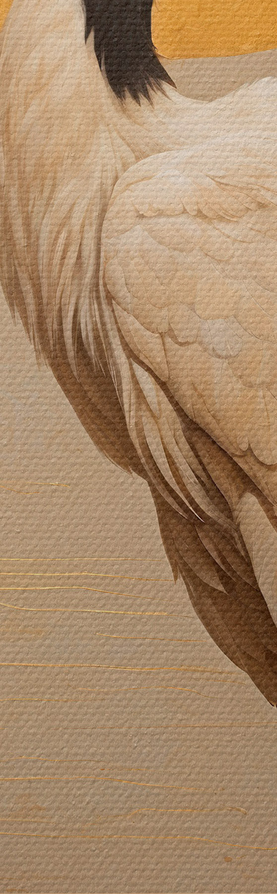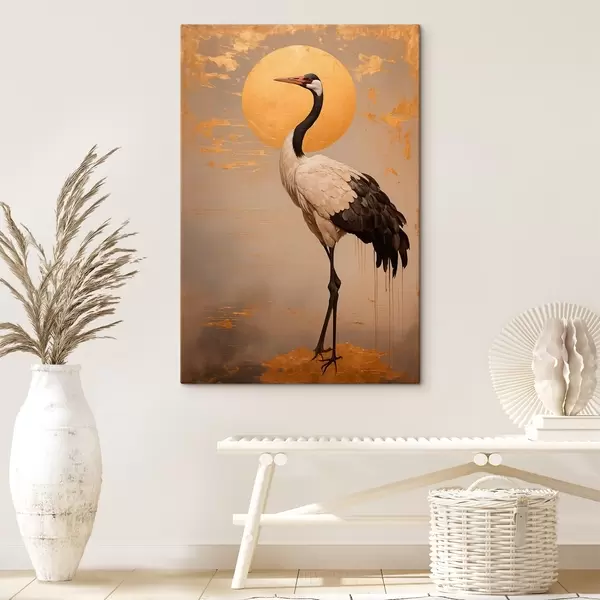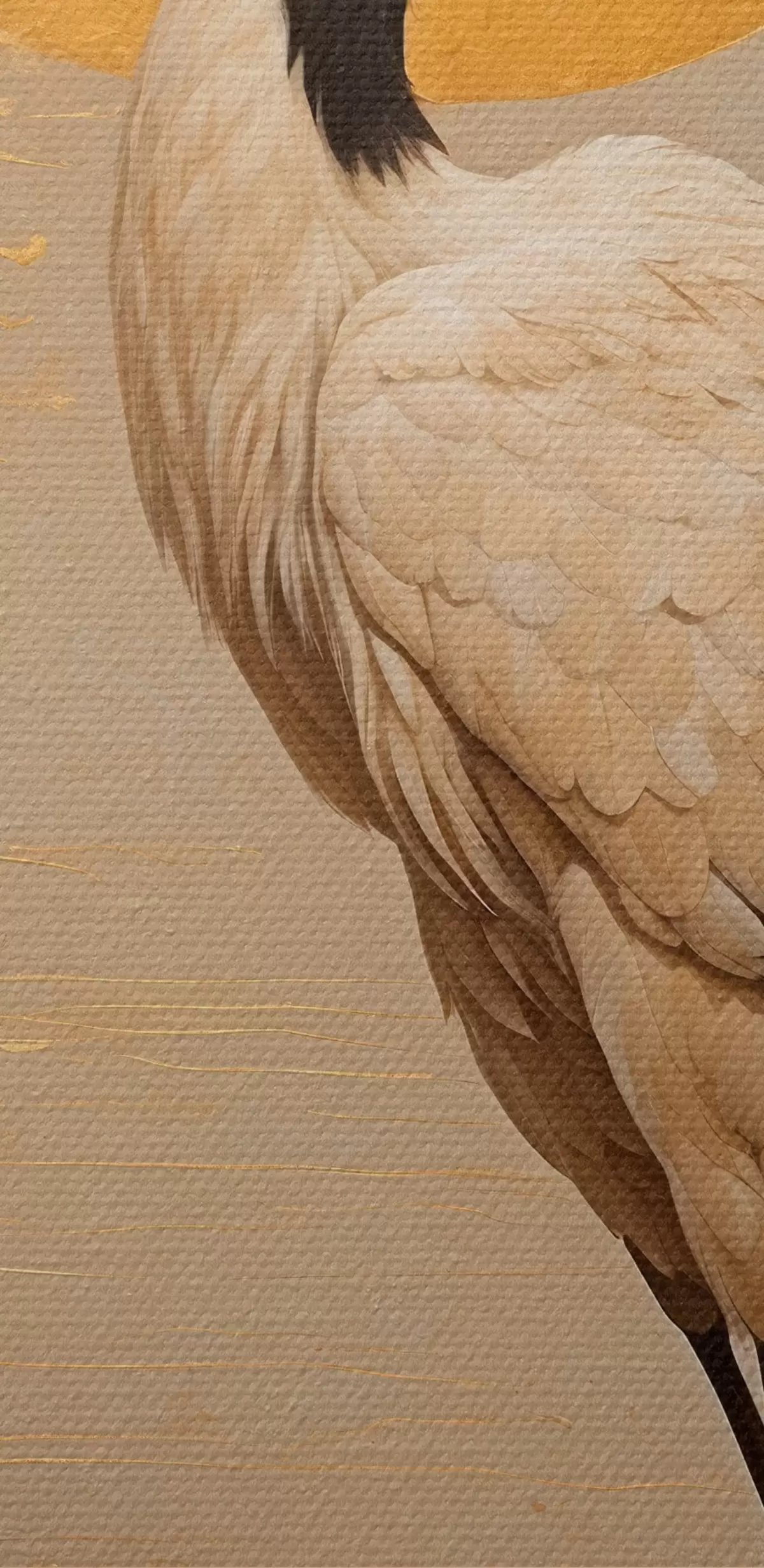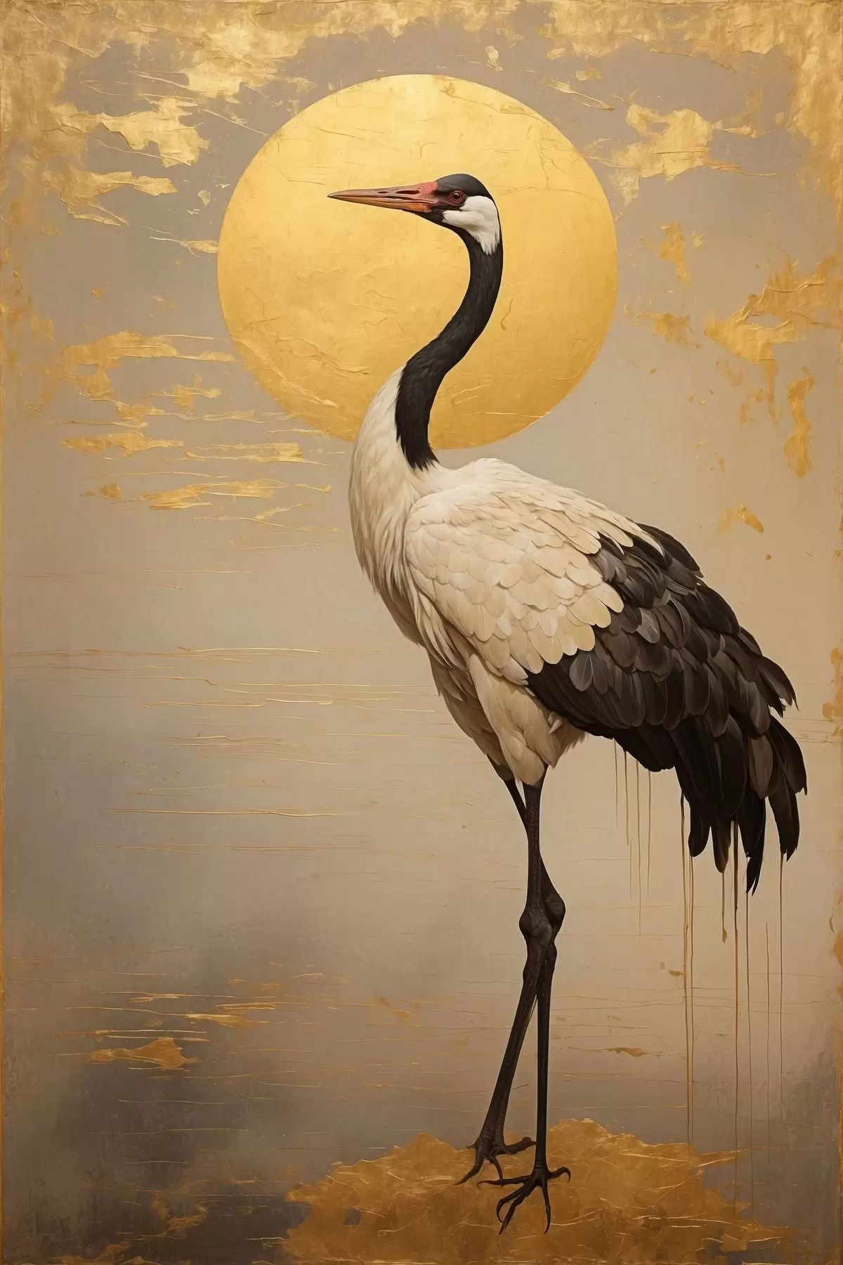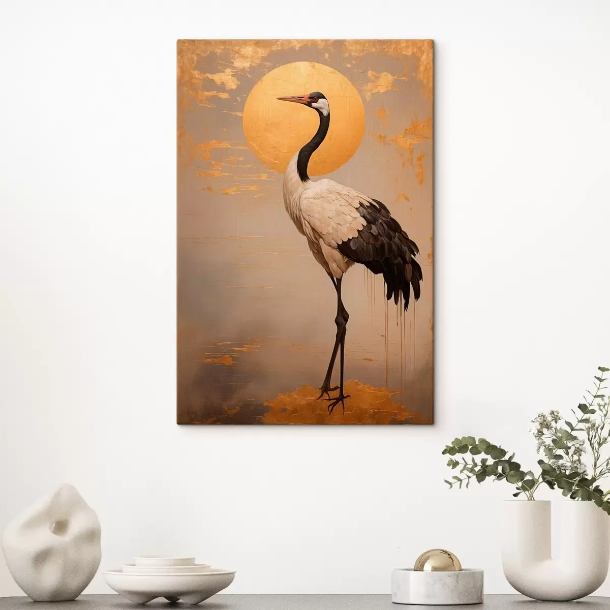 Peinture Grue devant le soleil, style peinture acrylique Art. s42773