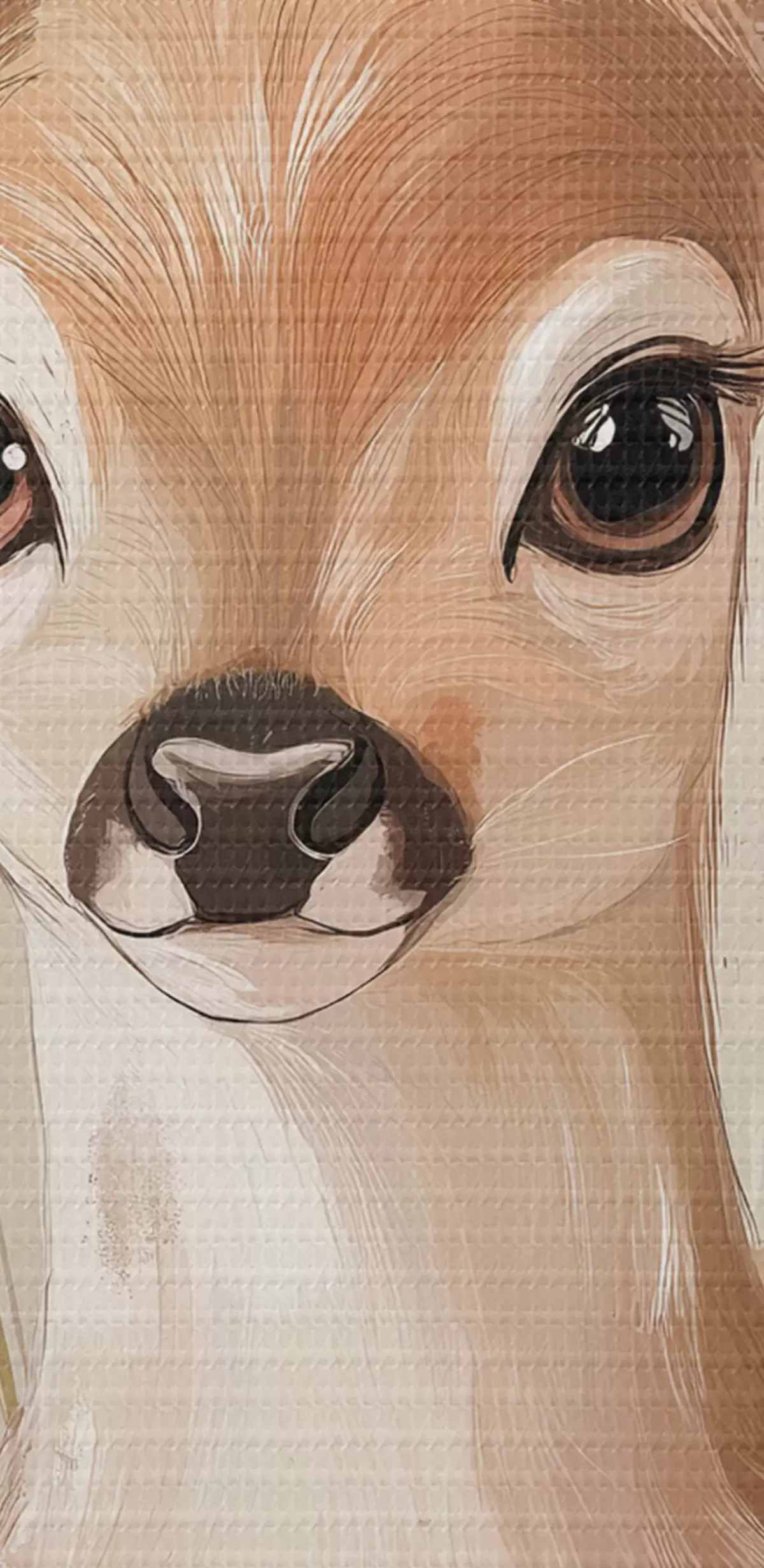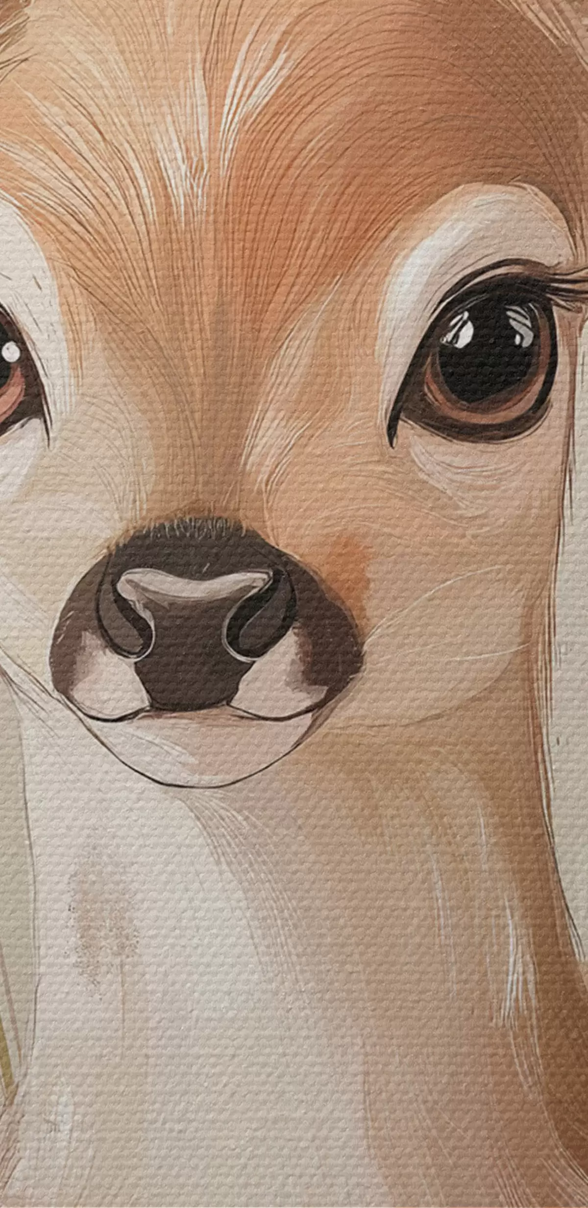 Peinture Petit cerf dans la prairie d'été, dessin à l'acrylique, couleurs rose pastel et beige Art. s42781