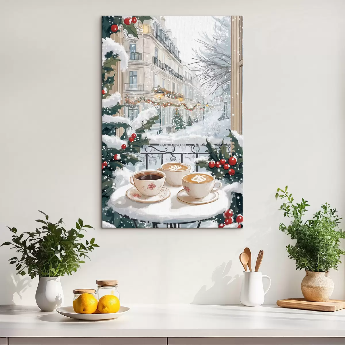 Peinture Esthétique hivernale, tasses de café, restaurant, rue de la ville Art. s42794