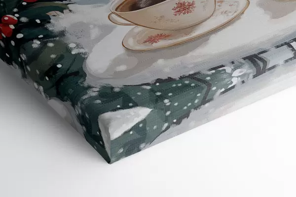Peinture Esthétique hivernale, tasses de café, restaurant, rue de la ville Art. s42794