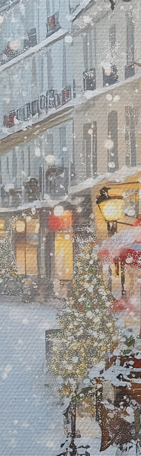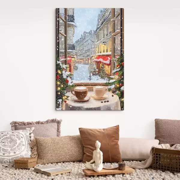 Peinture Café d'hiver confortable, tasses de café, style acrylique, architecture de la vieille ville Art. s42795