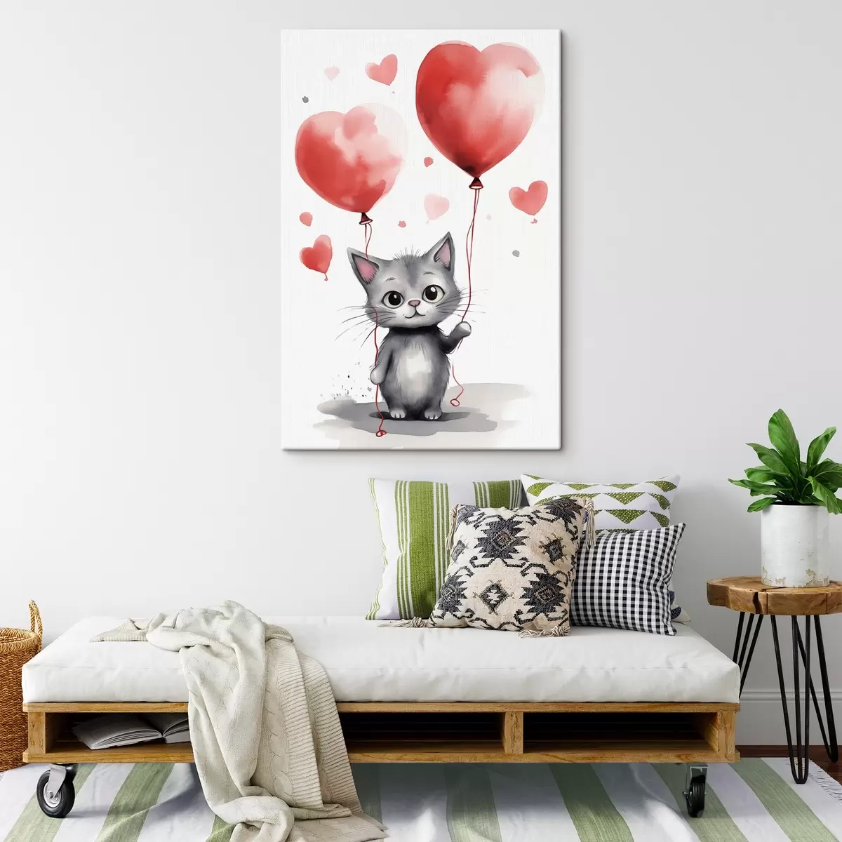 Peinture Chaton mignon avec des ballons en forme de coeur Art. s42871