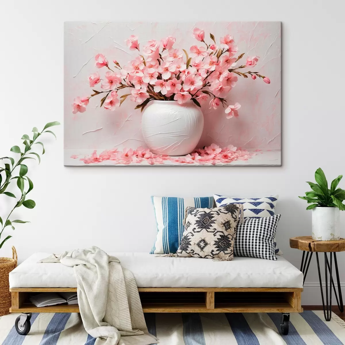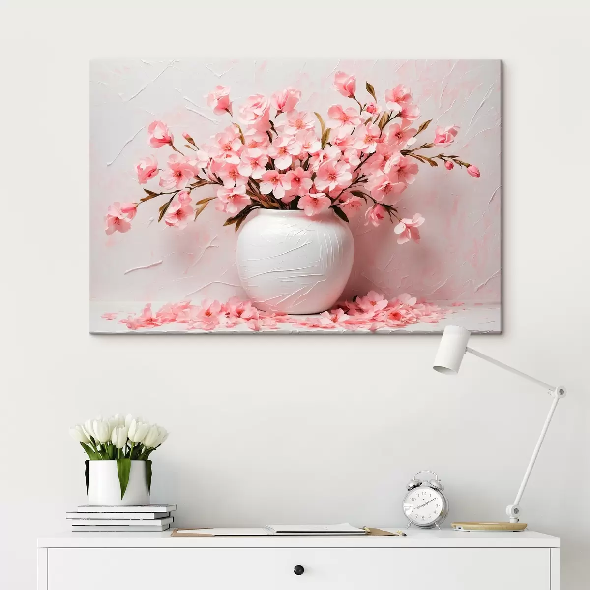 Peinture Fleurs roses dans un vase blanc Art. s42915