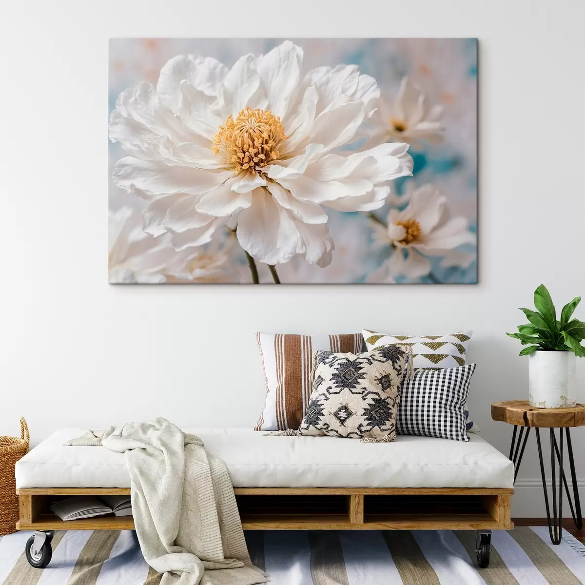 Trois types de matériaux peuvent être commandés : Economic Canvas - matériau dense et durable pour l'impression numérique, identique à la toile de peintre, surface imperméable, reproduction réaliste des détails, matériau à grain moyen. Premium Canvas - la texture ressemble à celle d'une toile de peintre (petits fils entrelacés). Reproduction douce et détaillée de l'image sur une surface mate. Eco-Premium - tissu 100 % coton de haute qualité. Grâce aux fibres naturelles de coton, le matériau est durable et résistant à l'usure. Excellente reproduction des couleurs et des détails.