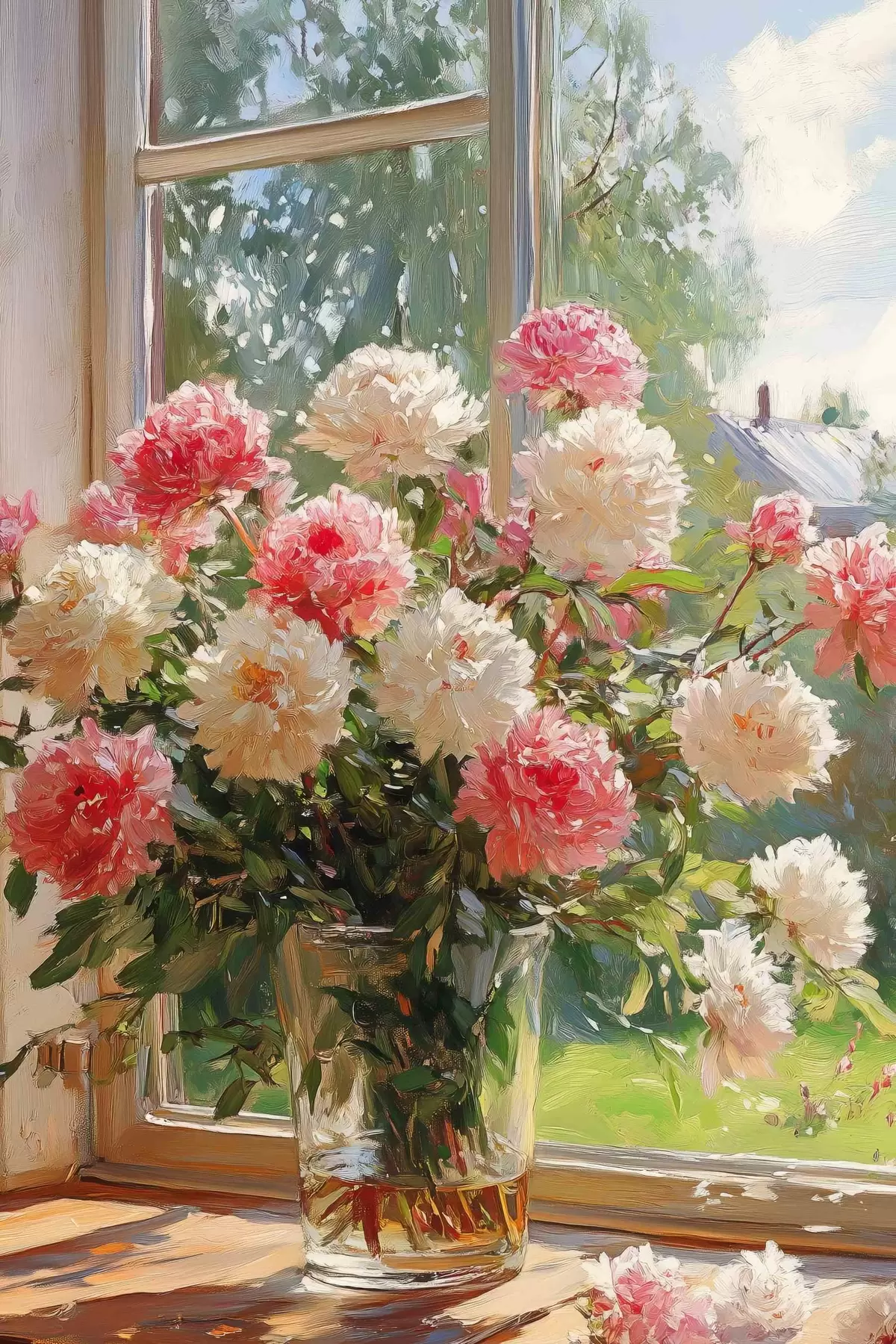 Peintures Bouquet sur la fenêtre dans le style de la peinture à l'huile s42978