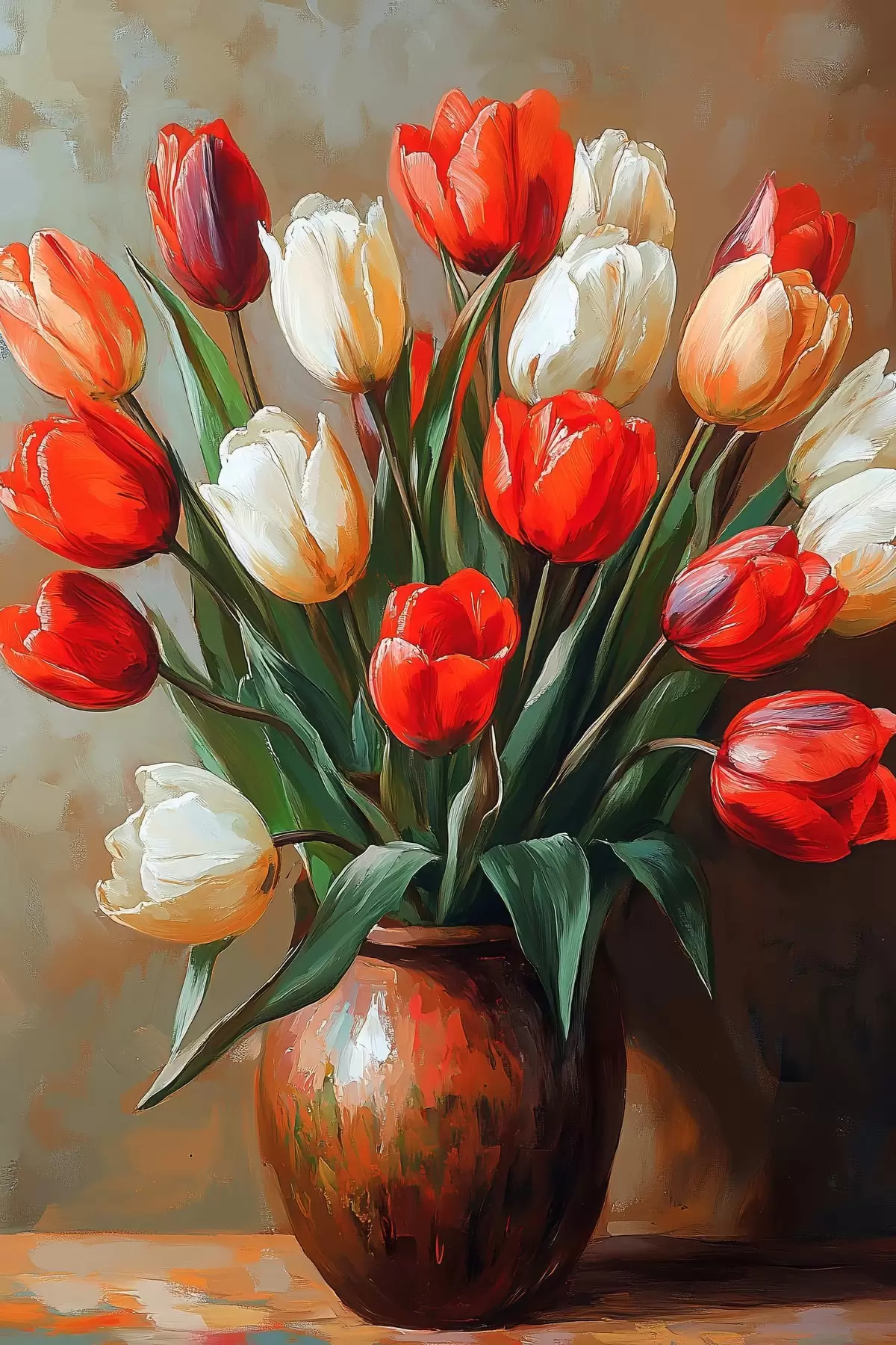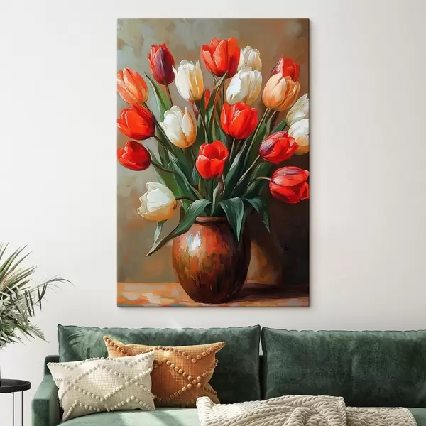 Peintures Bouquet de tulipes rouges et blanches s42981