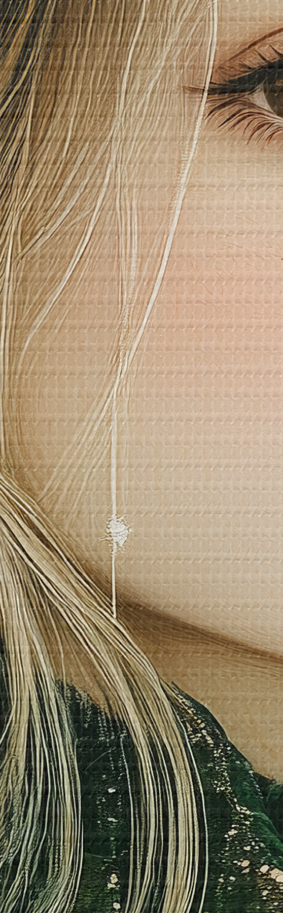 Trois types de matériaux peuvent être commandés : Economic Canvas - matériau dense et durable pour l'impression numérique, identique à la toile de peintre, surface imperméable, reproduction réaliste des détails, matériau à grain moyen. Premium Canvas - la texture ressemble à celle d'une toile de peintre (petits fils entrelacés). Reproduction douce et détaillée de l'image sur une surface mate. Eco-Premium - tissu 100 % coton de haute qualité. Grâce aux fibres naturelles de coton, le matériau est durable et résistant à l'usure. Excellente reproduction des couleurs et des détails.