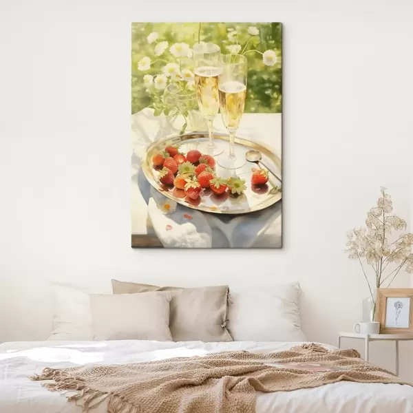 Peinture Verres à champagne avec fraises sur le plateau, fleurs de camomille, été Art. s43054