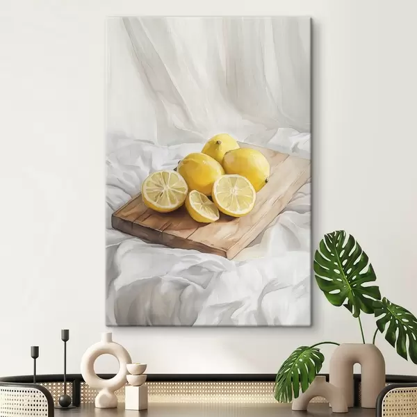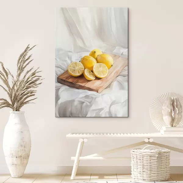 Peinture Citrons esthétiques sur la planche en bois, décoration intérieure, éclairage naturel Art. s43062