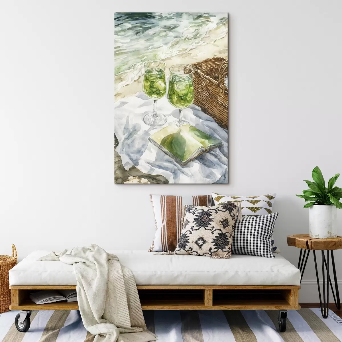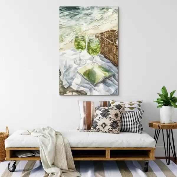Peinture Cocktails sur la plage, dessin à l'aquarelle, océan, été Art. s43067