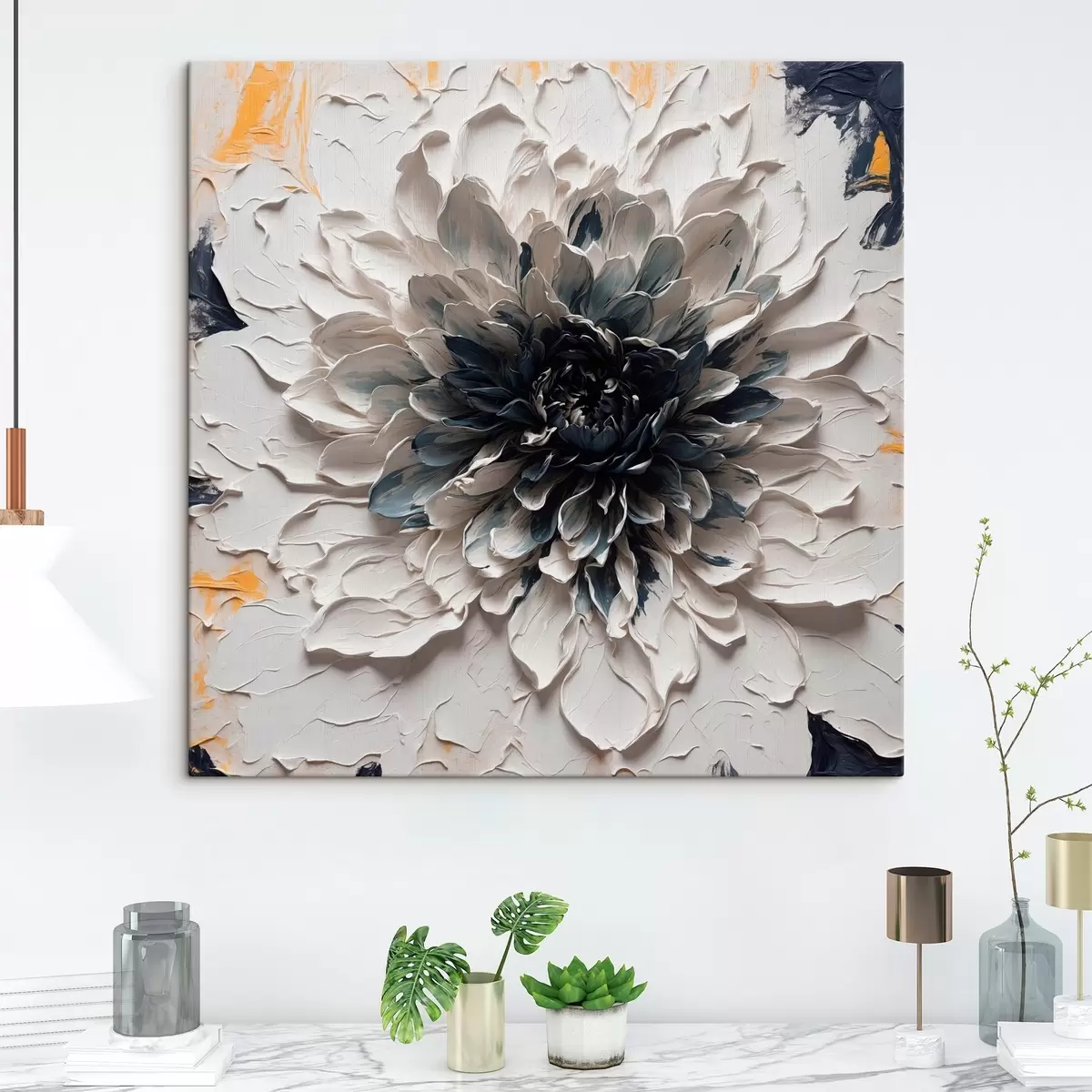 Peinture Fleur blanche au centre noir dans le style de la peinture à l'huile Art. s43113