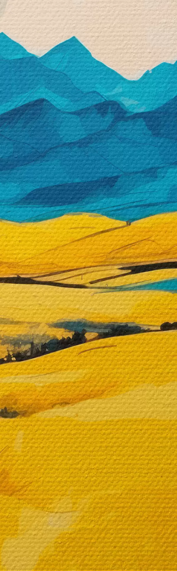 Peinture Champ jaune sur fond de montagnes dans le style de l'aquarelle Art. s43117