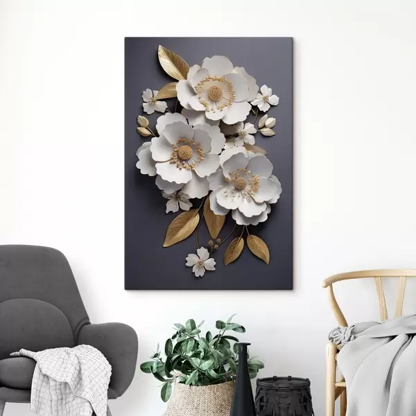 Peinture Trois fleurs blanches sur fond sombre Art. s43129