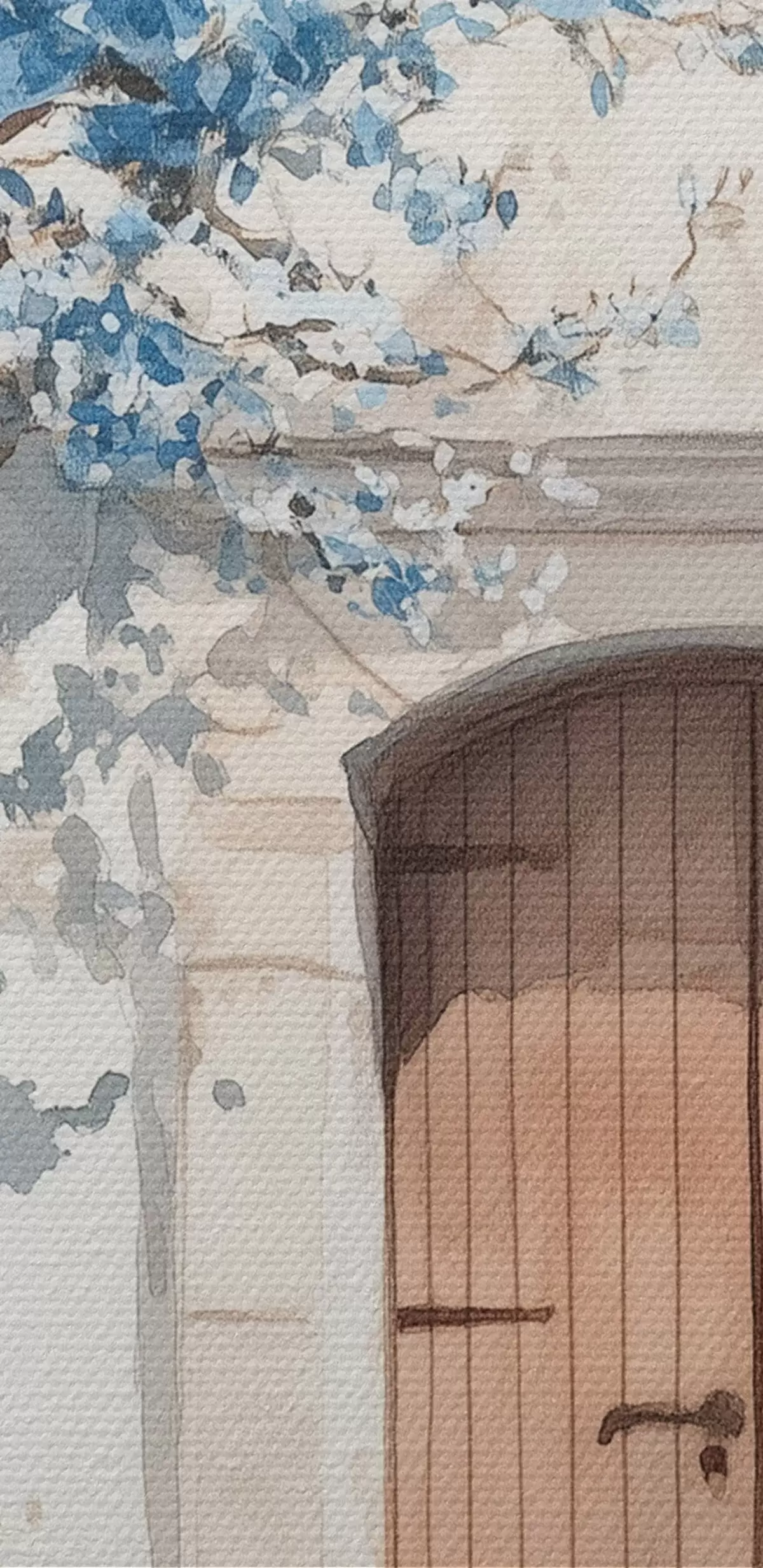 Peinture Maison grecque avec un bel arbre, architecture, style aquarelle Art. s43178