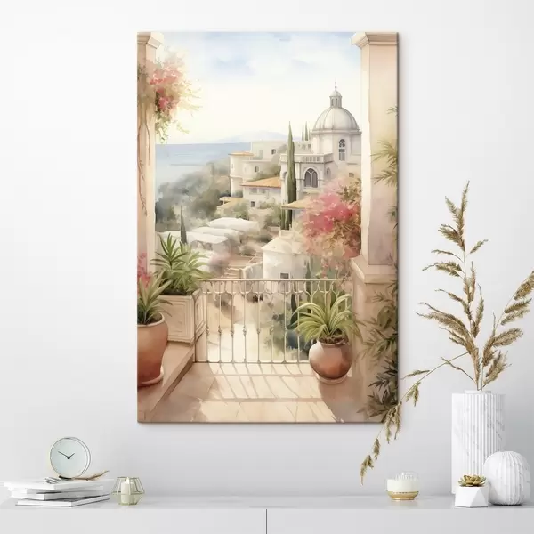 Peinture Espagne, paysage d'été, architecture méditerranéenne, style aquarelle Art. s43181