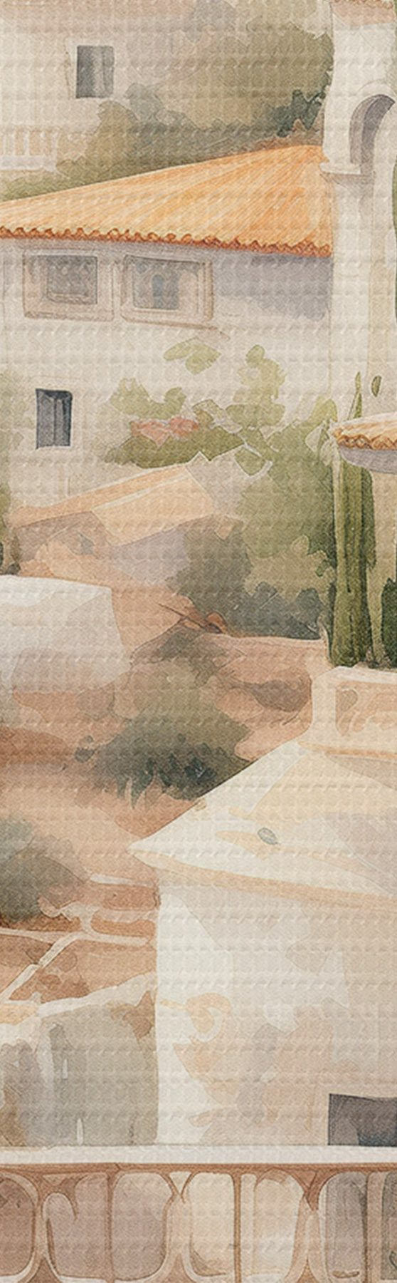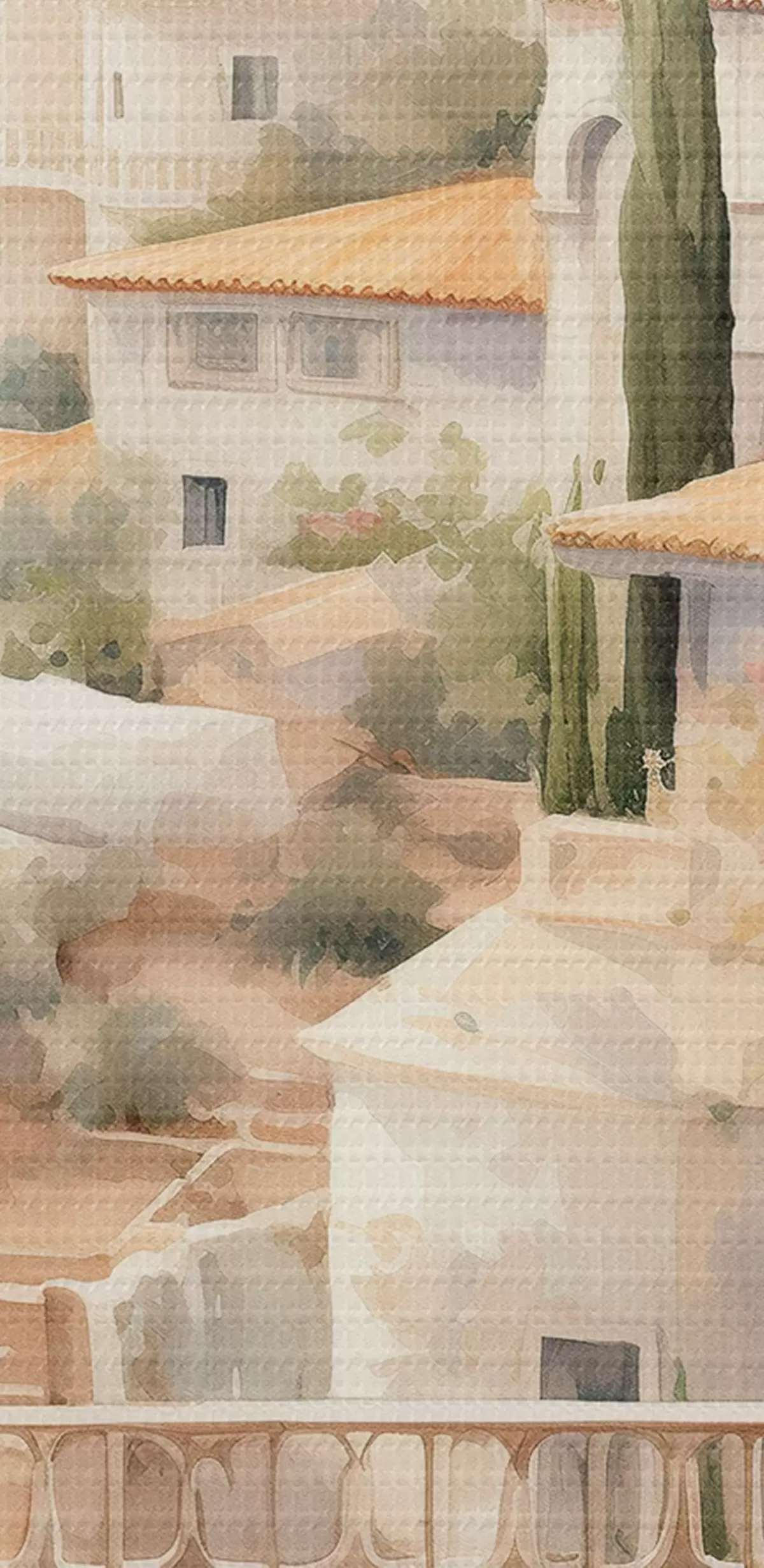 Peintures Espagne, paysage d'été, architecture méditerranéenne, style aquarelle s43181