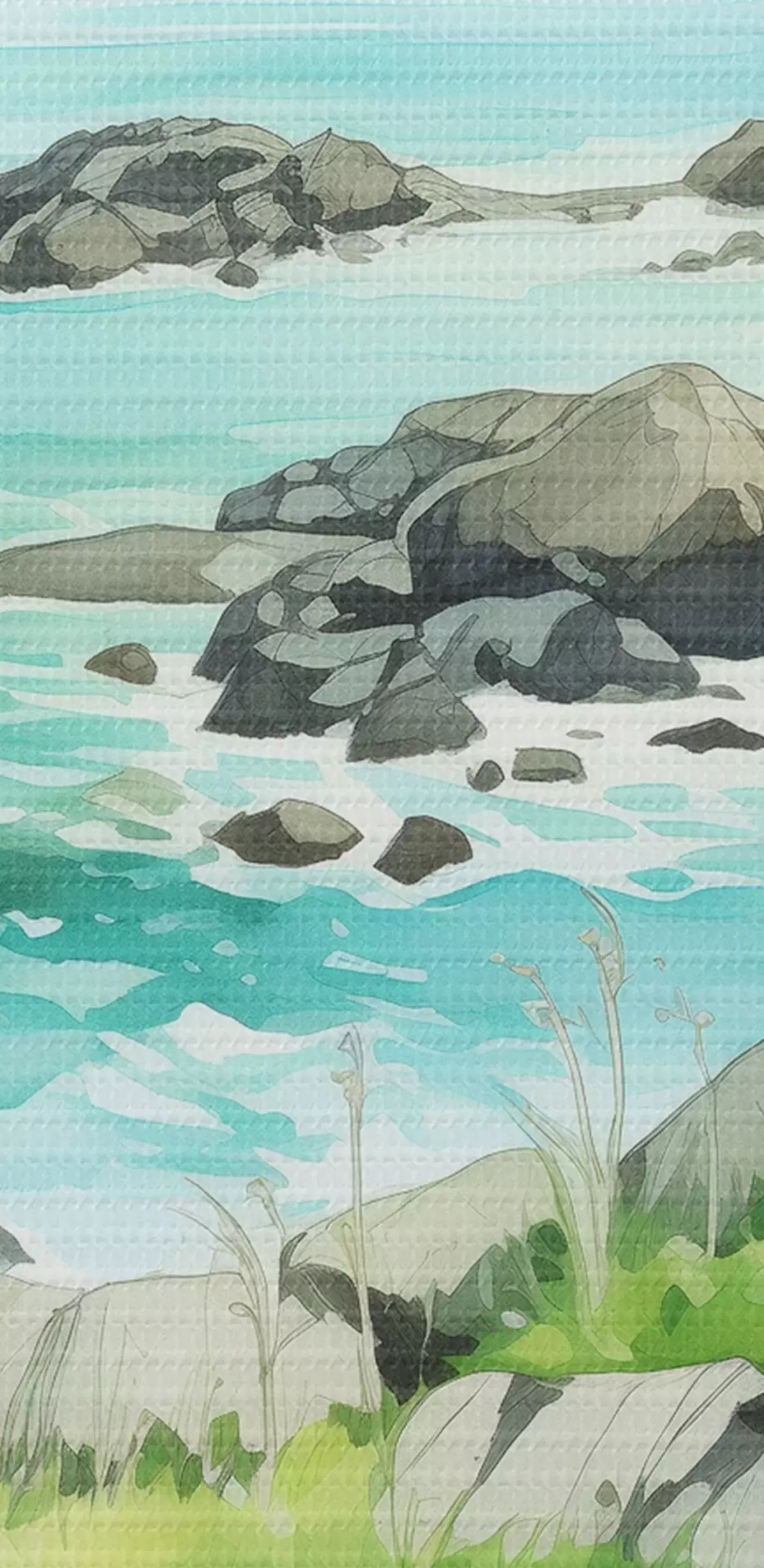 Peintures Norvège nature, fjords, paysage d'été, herbe verte, montagnes, style aquarelle s43188