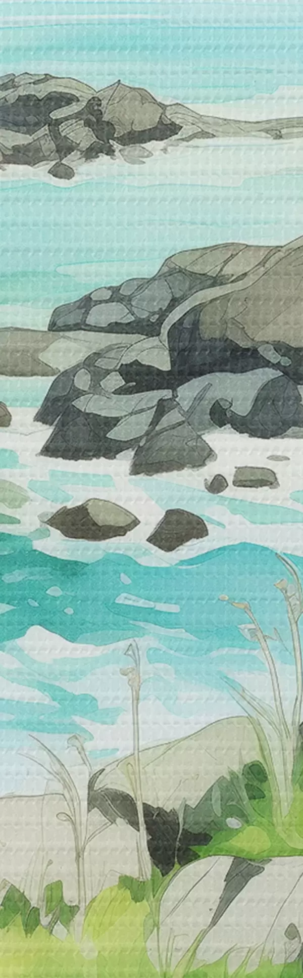 Peinture Norvège nature, fjords, paysage d'été, herbe verte, montagnes, style aquarelle Art. s43188