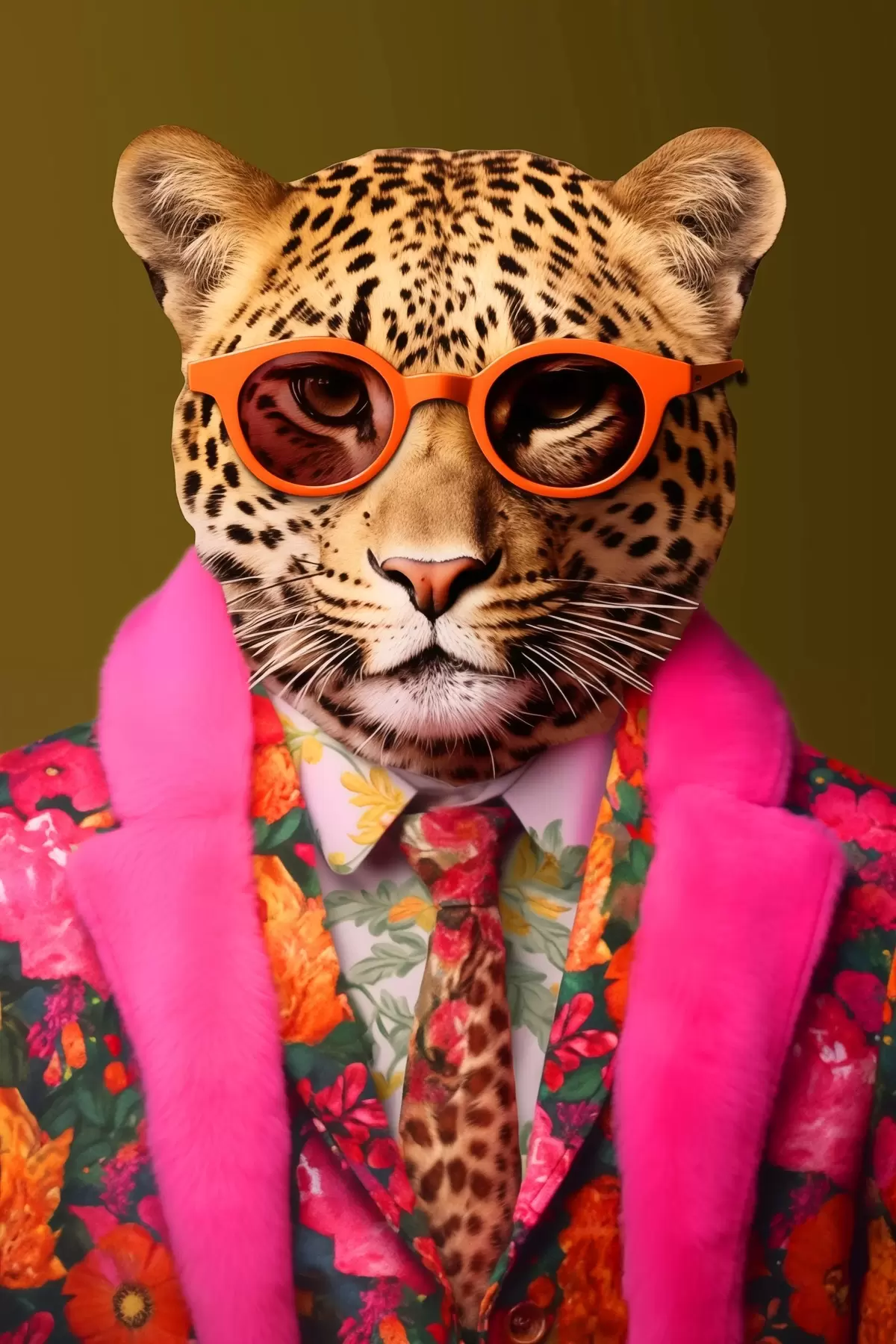 Peintures Un léopard élégant dans un costume fleuri s43267