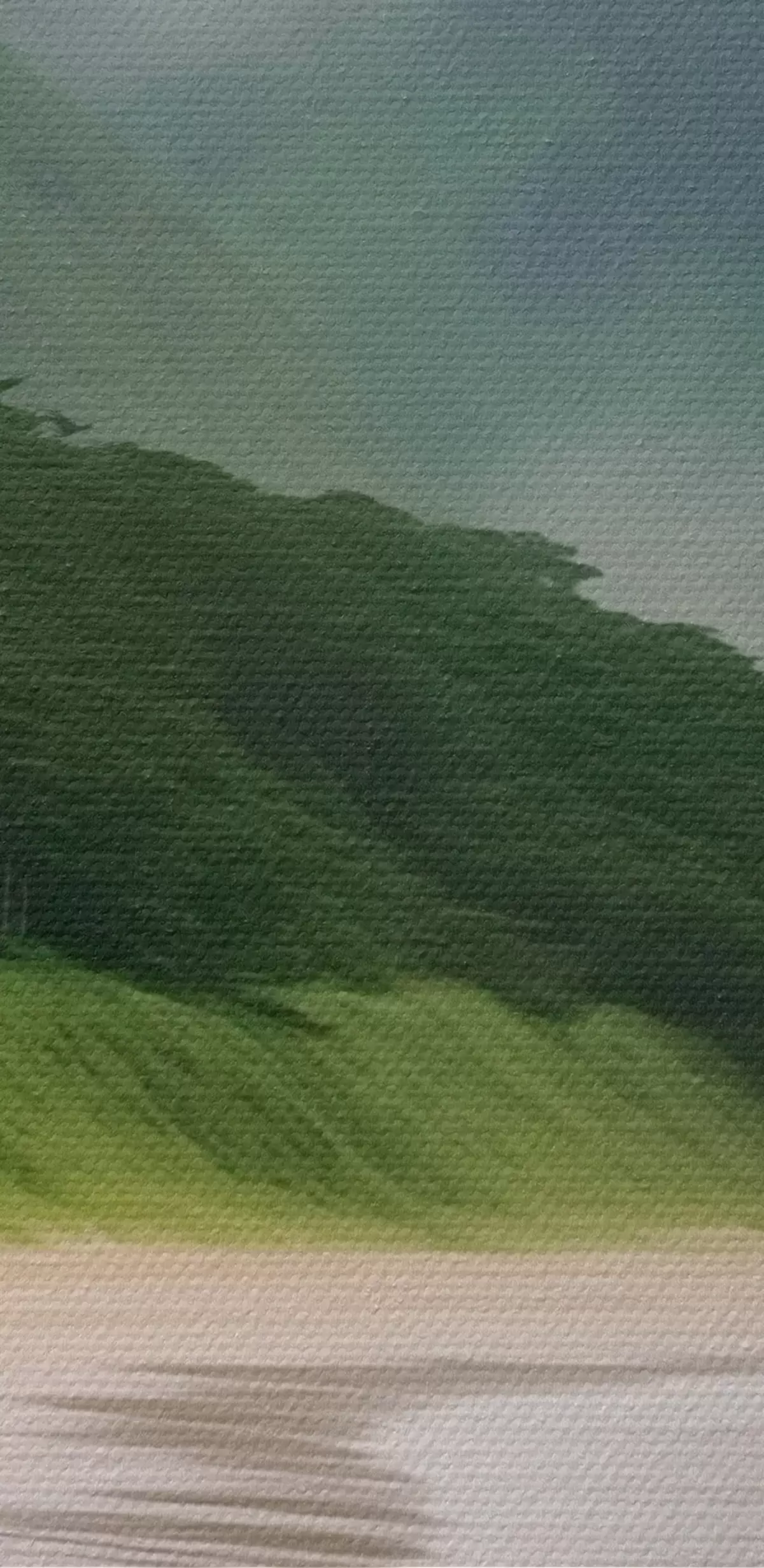 Peinture Plage brumeuse près de pentes vertes Art. s43271