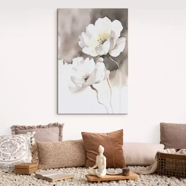 Peintures Fleurs blanches sur fond brun dans le style de l'aquarelle s43297