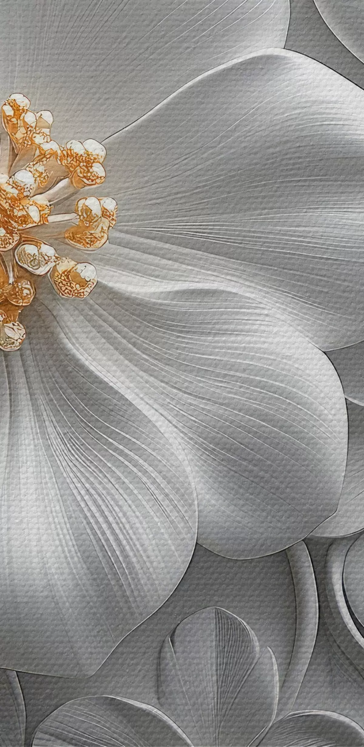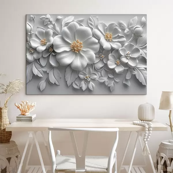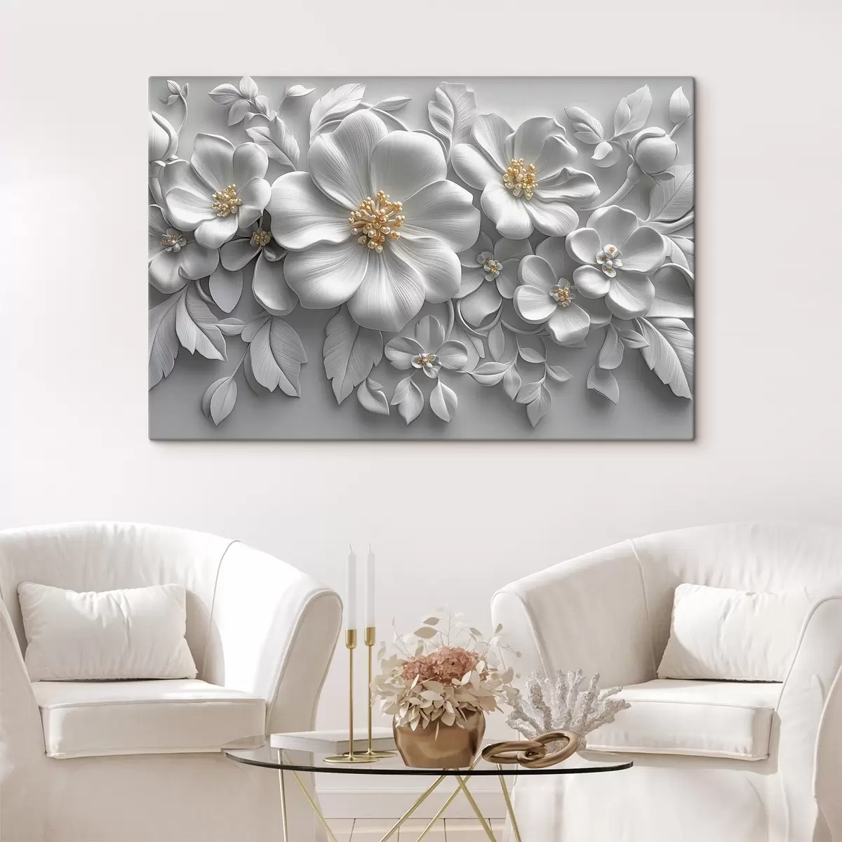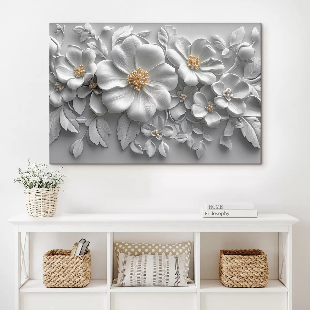 Peinture fleurs grises 3d avec un accent jaune Art. s43310